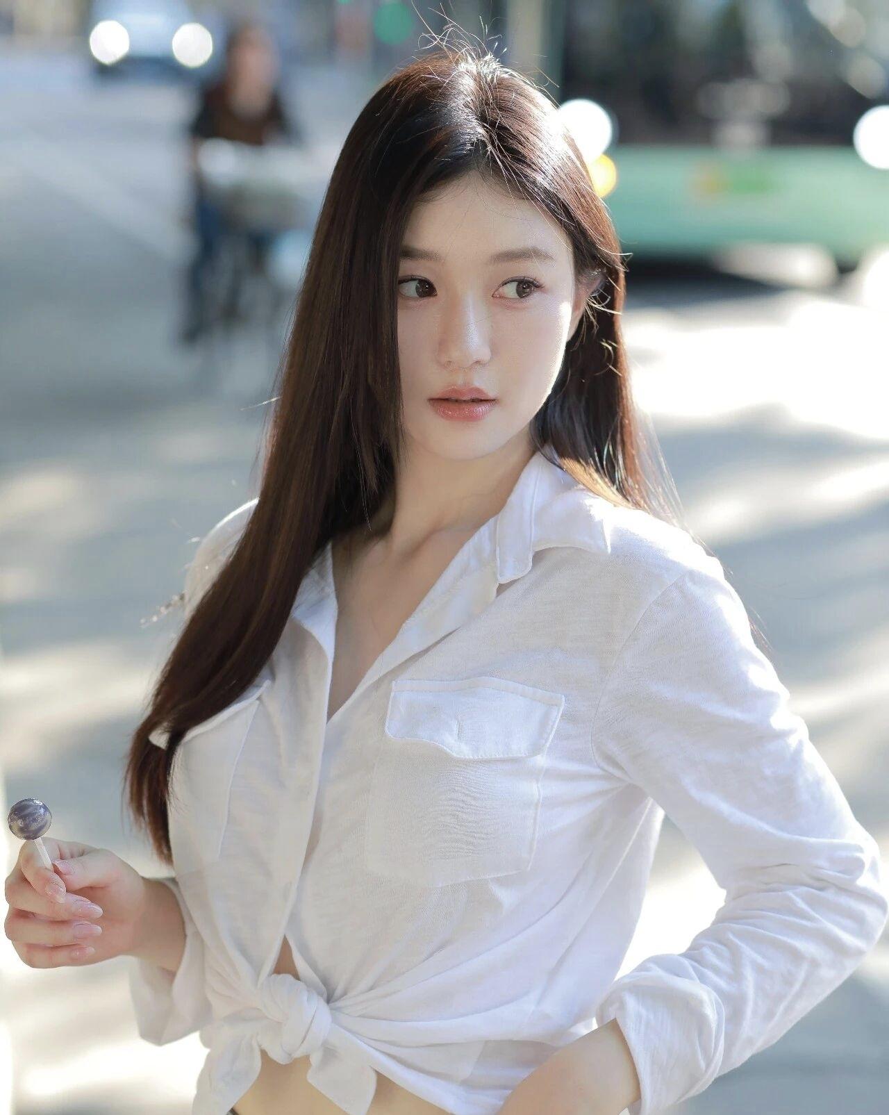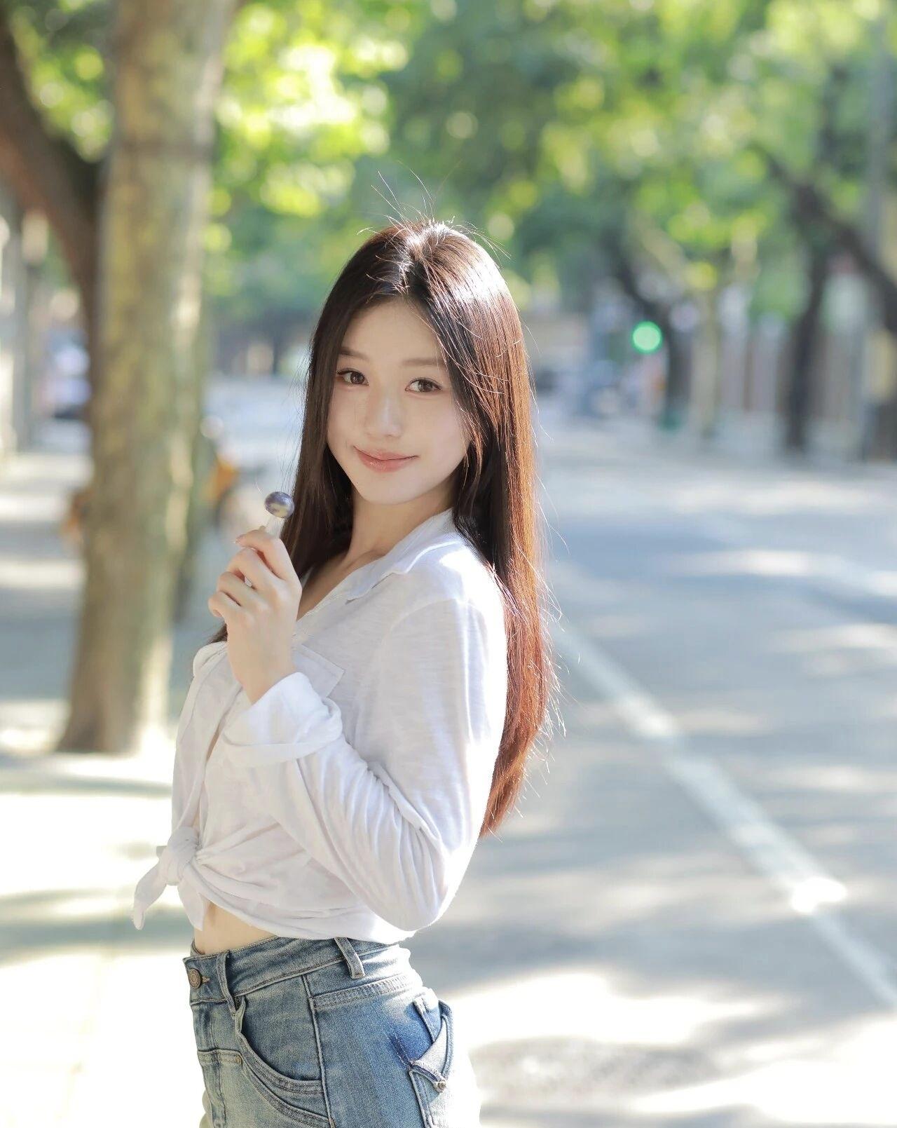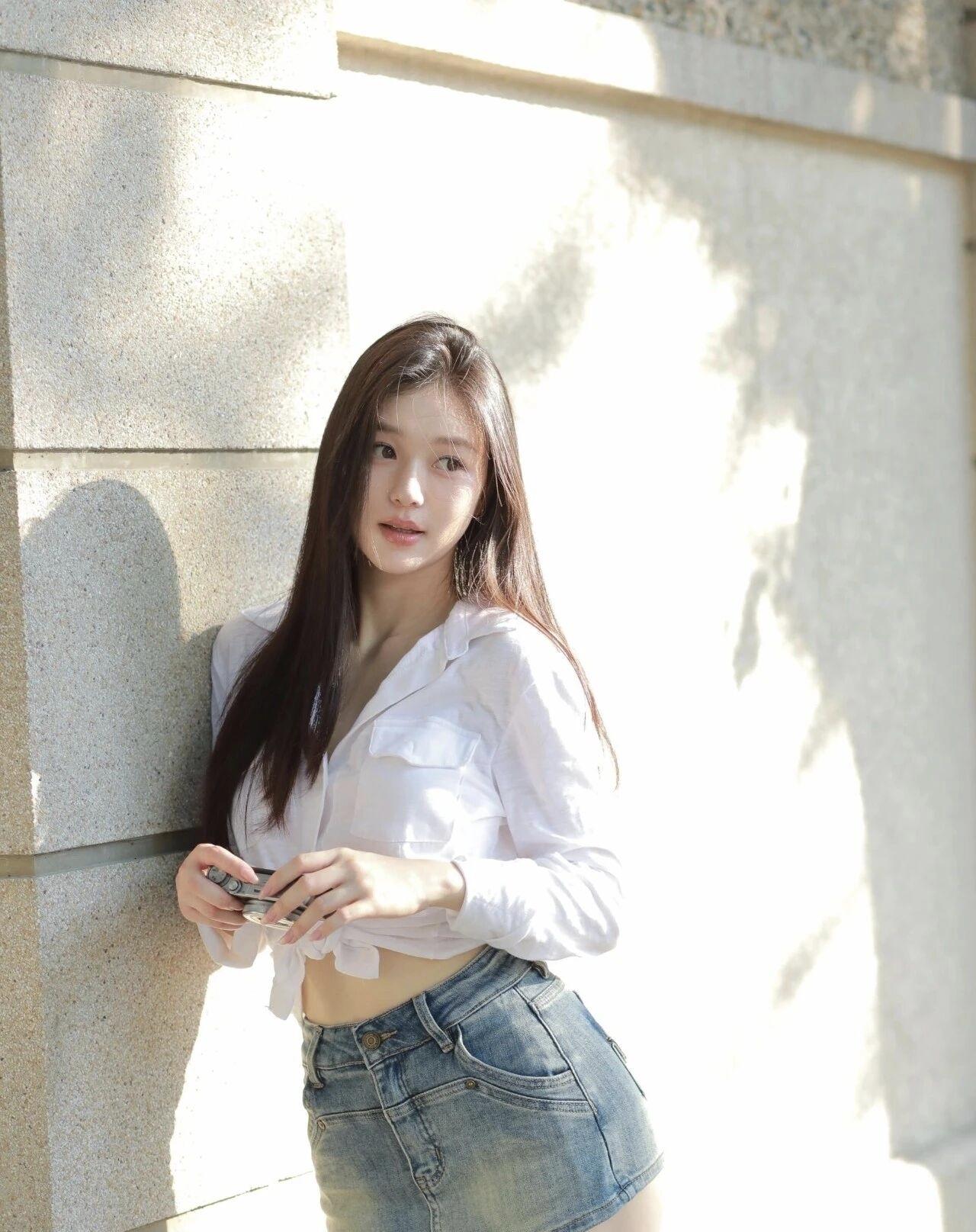 午后的墙沿接住了光斑,白衬衫和牛仔裙是夏末没说完的松弛。指尖捏着半卷胶片,风路过时,把影子也揉成了温柔的形状。