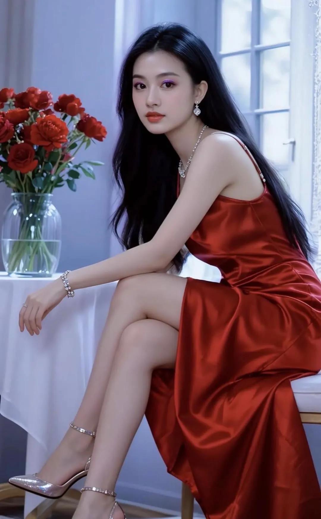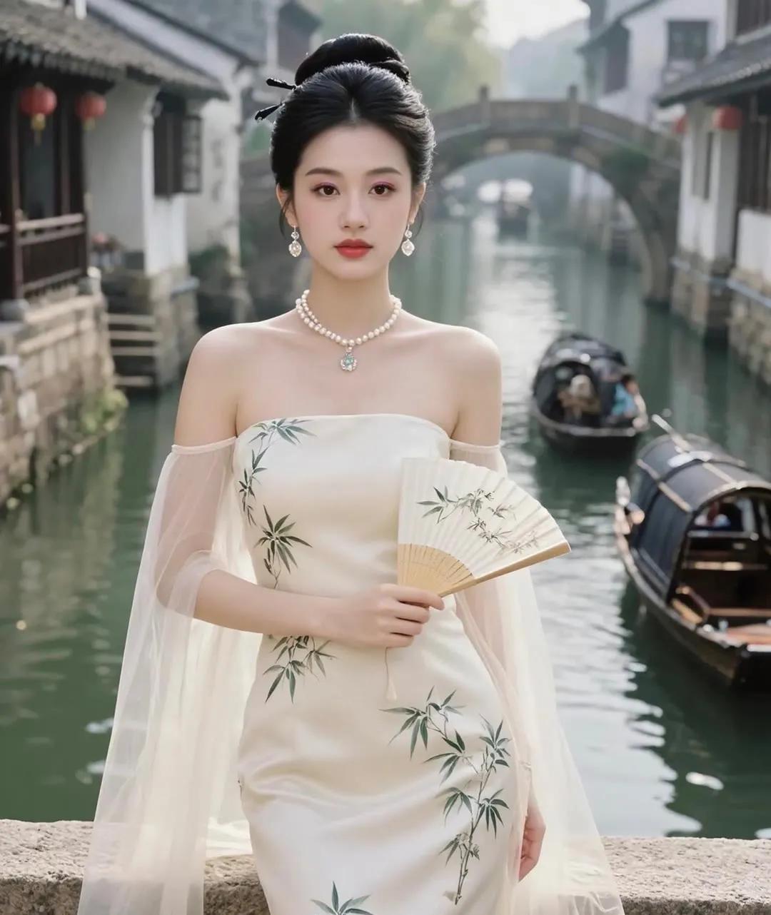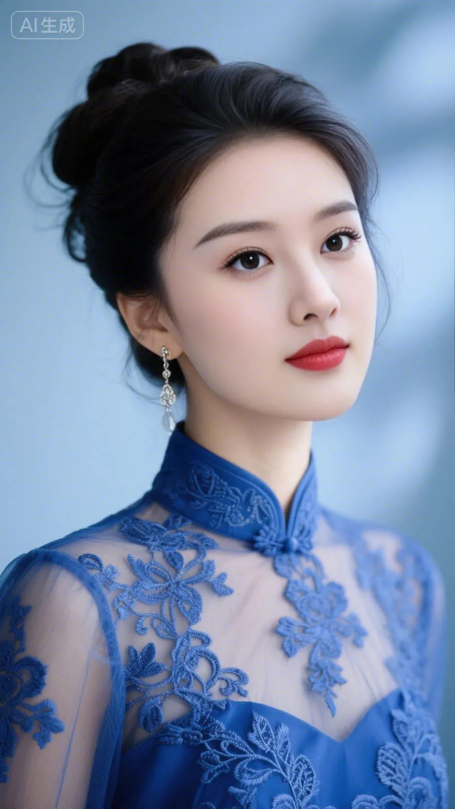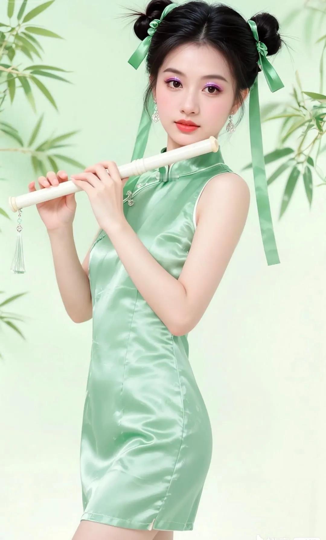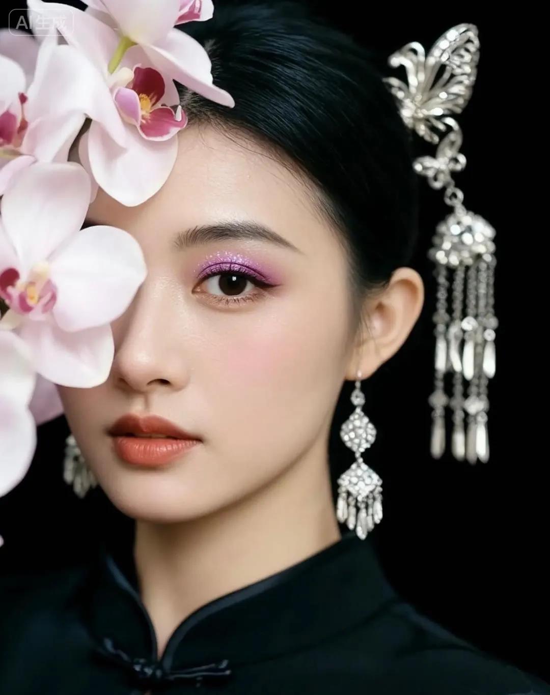 古典旗袍美人,优雅姿态,花饰点缀,韵味十足。