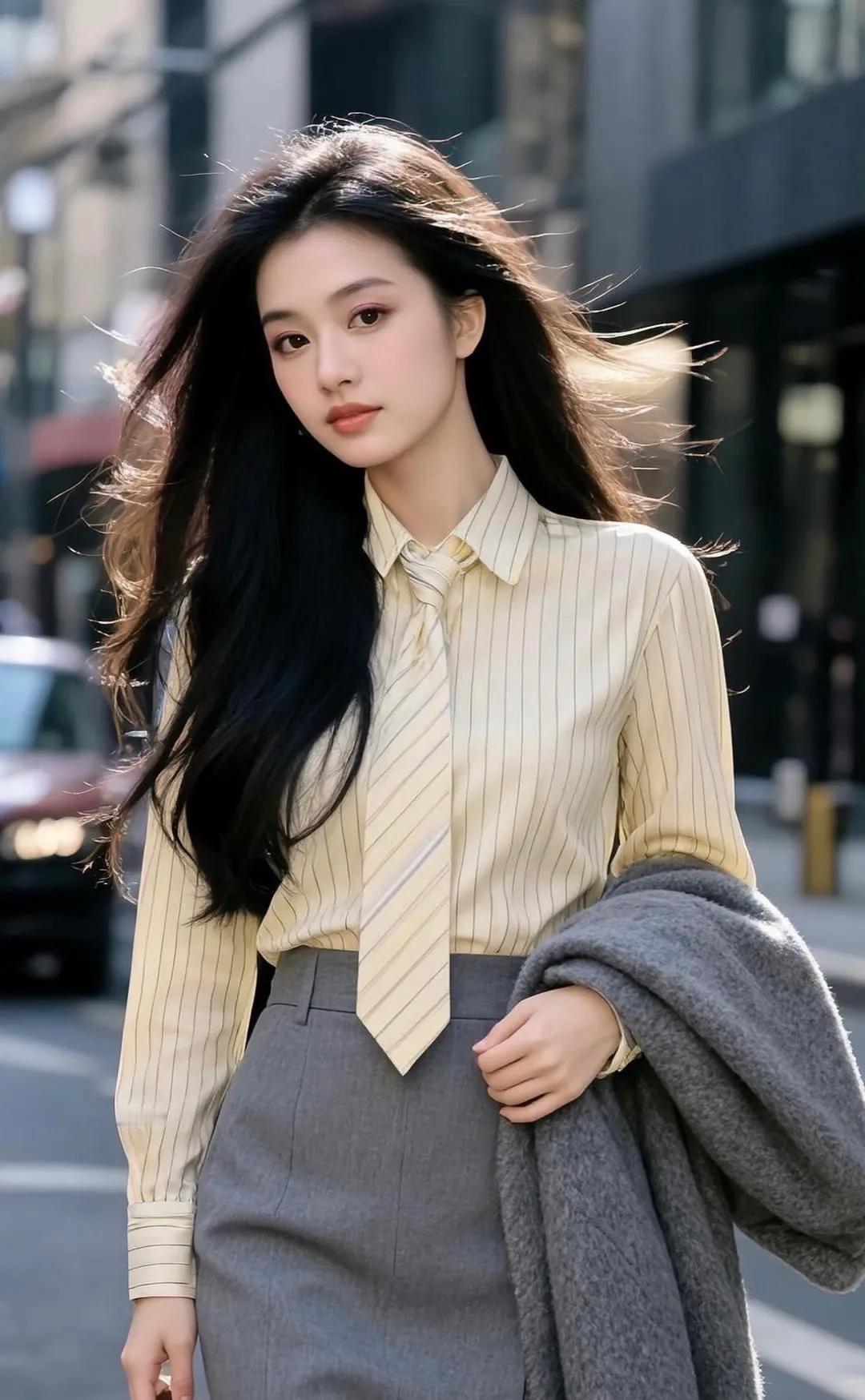 温柔职场风,浅绿色衬衫搭配黑色裙子,清新自然,元气满满!🌿💼