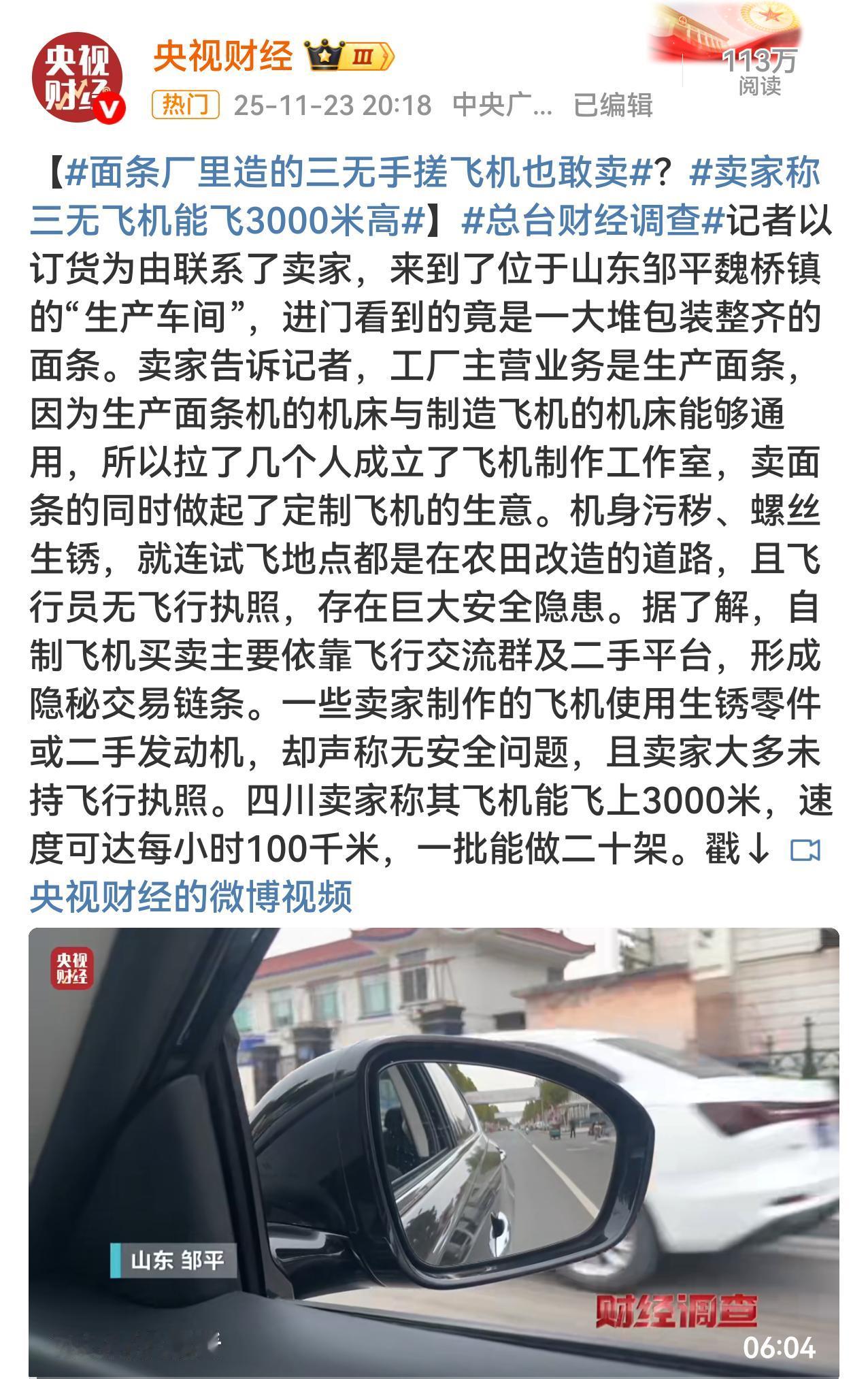 虽然这哥们手搓“三无飞机”是违法了,但这哥们广而告之了一个大发现,就是面条机生产线可以和飞机生产线通用。太遗憾了,这哥们要是不违法,自己开个直播或视频号,把造飞机的过程记录下来,必火!说不定大把的投资就过来。更大胆的是买飞机的……举一反三,哪些生产线可以通用,这对制造业发展是有积极作用的。
