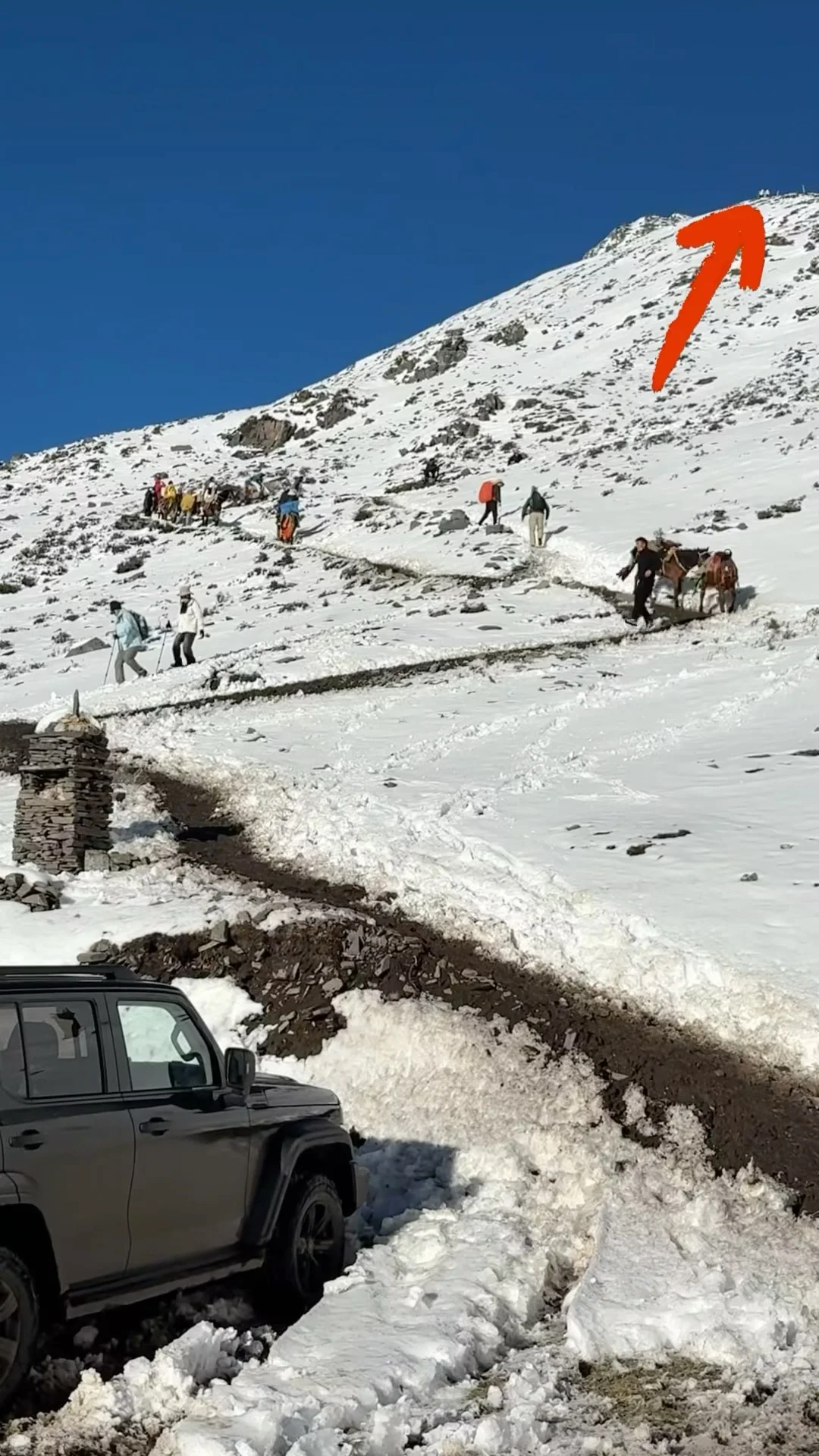▫️冷嘎措B线终点停车场上方的山脊,也就是在B线终点下车后,需要翻过后到达冷嘎措湖边的那个山脊上,见P4箭头指向的地方