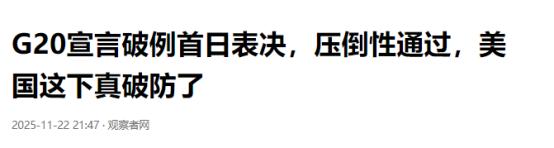 特朗普暴怒了,G20峰会首日就撇开美国发声明,白宫这次真傻眼,原来世界离开美国一样转。   这事得从特朗普那出荒诞剧说起。距离峰会还有俩月,他突然翻出 “南非迫害白人农民” 的陈年谎言,嚷嚷着 “南非在搞种族灭绝”,不仅宣布自己不去参会,还停了对南非的援助,甚至给南非白人发 “难民身份”。   明眼人都看得出,这就是借口 —— 毕竟这届 G20 是首次在非洲举办,主题 “团结、平等、可持续” 戳中了美国的霸权痛处,他们压根不想让发展中国家主导议程。   更嚣张的还在后头。美国驻南非大使馆直接递照会,下了最后通牒:“我们不参加,你们也别想发任何共识文件”。特朗普团队大概还活在十年前,觉得 G20 离了美国就成不了事 —— 以前气候协议要美国拍板,债务方案得看美国脸色,就连峰会宣言都得等美国点头才敢印。   这次他们玩得更绝,不光总统不来,干脆一个官员都不派,创下 G20 历史上 “零官员出席” 的纪录,想把峰会搅黄。   可南非没惯着这臭毛病。作为轮值主席国,南非总统拉马福萨直接硬刚:“不能让缺席的国家拖累国际机构的进程”。   更绝的是,美国原本想通过轮值主席国交接仪式刷存在感,派个临时代办来撑场面,结果南非直接拒绝:“总统不会把主席国职位移交给一名临时代办”,把仪式改成低调闭门进行,连直播都取消了。这波操作等于当众抽了美国一记耳光 —— 你不想好好玩,那没人陪你演霸权戏码。   最让白宫傻眼的是 “铁杆盟友” 的反水。法国总统马克龙直接戳破美国的小算盘:“美国缺席很遗憾,但全球问题不能等,峰会该开还得开”。   要知道,马克龙这话可不是随口说的 —— 气候变化、债务危机这些议题,欧盟比谁都急着推进。   以前看美国脸色是碍于情面,现在美国自己撂挑子,英法德干脆顺着台阶下,跟着其他国家一起推进议程。毕竟谁都不傻,总不能跟着美国一起当全球发展的绊脚石。   峰会第一天的反转堪称名场面。按照惯例,宣言得等到最后一天才表决,可这次各国干脆把议程提前,开幕就投票。   据南非总统府发言人透露,会前各国协调人连夜熬了四天,周五早上八点半就敲定了草案,除了缺席的美国,其他国家全票通过。   更狠的是,宣言里偏偏写了美国最反对的气候变化议题,还明确要改革国际金融体系、帮贫困国家减债 —— 这等于直接撕碎了美国的霸权剧本。   特朗普这下彻底破防了,公开痛斥南非 “无耻”,白宫官员也跟着抱怨 “南非打破了 G20 的传统”。   可这抱怨听着更像无能狂怒 ——G20 从成立起就没规定 “少了美国不能发宣言”,所谓 “传统” 不过是美国长期霸权逼出来的潜规则。印度《经济时报》说得直白:“美国缺席反而扫清了共识障碍”,这话算是点透了本质。   其实这事早有预兆。G20 本来就是 1997 年亚洲金融危机后,为了让发展中国家有话语权才成立的,现在全球南方国家早就不是任人拿捏的配角了。   这次峰会前,中国等发展中国家在背后斡旋,金砖国家和非洲国家更是拧成一股绳,坚决反对美国把气候议题 “政治化”、债务问题 “武器化” 的套路。当 19 个国家都想做事,美国的反对票自然就成了废纸。   美国自己正在变成 G20 的 “局外人”。宣言里提到的清洁能源融资、关键矿产开发这些新议题,全是未来全球经济的风口,美国因为缺席,连规则制定的边都摸不着。   而南非这届峰会创下的 “无美国共识” 先例,等于给以后的国际会议立了新规矩 —— 谁再想拿 “缺席” 当威胁,先看看约翰内斯堡的例子。   特朗普骂南非 “无耻”,可真正无耻的是美国的霸权逻辑:我不想玩,你们也别想好好玩;我不点头,地球就别转了。   可现实狠狠打了他的脸 —— 没有美国,19 个国家照样能达成 122 条共识;没有霸权,全球问题反而能更快推进。   拉马福萨在开幕式上说的那句话,大概就是对美国最狠的回应:“多边主义能够且确实在发挥作用,世界不会让任何一个国家掉队 —— 不管它是谁。”   这事说到底,就是美国霸权失灵的真实写照。以前靠武力和威胁能逼各国让步,现在大家更认 “解决问题” 而不是 “谁拳头大”。   就像南海的 “尼米兹” 号航母,耀武扬威半天,摔了飞机还得灰溜溜跑路,美国的霸权神话,正在被一个个现实耳光打回原形。
