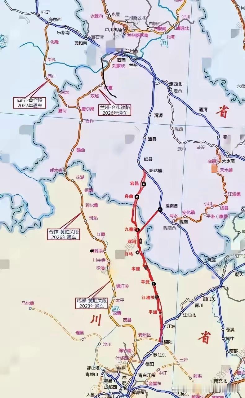 还在纠结修绵阳~陇南铁路时速多少? 首先,通常在没有普通铁路的情况下,不会直接建高铁,东部省份都是如此。其次,通往成都的川青铁路以及通往重庆的兰渝铁路,更是如此,不会直接修时速350的客专。 更何况绵陇之间沿线客流都难以支撑,直接建350高铁可能性为零。修时速200的客货混跑最合适。