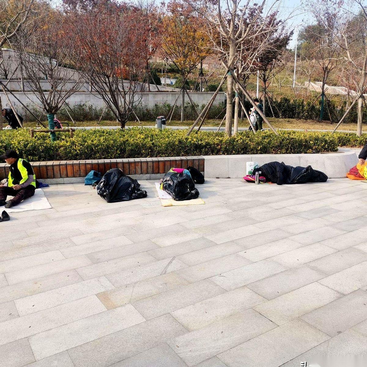 一句“以前生产队的骡马还有个窝棚呢”,直接给我干沉默了。 今天中午,公园门口,阳光挺好,风也挺硬。 一排人,七八个,裹着工作服,就那么直挺挺地躺在冰凉的地上睡午觉。都是些叔叔阿姨的年纪,脸上的褶子,跟这公园里的老树皮似的。 我正站那儿心里不是滋味,旁边一个下山遛弯的大爷,看着这景象,摇着头,就说了开头那句话。 说完,又补了句:“瞎胡闹嘛这不是。” 我一下就愣那儿了。 是啊。 我们把公园修得这么好,有山有水有长椅。 可偏偏,就是这些亲手把公园变好的人,连一个能挡风、能躺下歇歇脚的屋子都没有吗? 一张折叠床,一个能喝口热水的角落,很难吗? 我就在想,这些叔叔阿姨的孩子,要是刷手机刷到自己爸妈是这么个午休法,心里得有多疼啊。 他们自己,肯定跟家里报喜不报忧,说在城里挺好的,吃得饱穿得暖。 可“好”,就是这样吗? 尊严这东西,真挺奇怪的。 有时候觉得它不值钱,可有时候,它又比什么都金贵。 说不上来,就是心里堵得慌。 一股子凉气,从脚底板,一直窜到脑门。