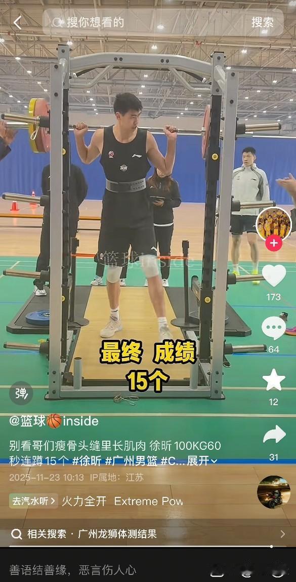 杜锋放弃徐昕还真是有原因的!体测成绩出来,徐昕与其他球员还是有不小的差距,单从负重100㎏深蹲这个项目来说,60秒时间内,徐杰完成25个,崔永熙完成30个,王哲林完成27个,而徐昕只能完成15个,说明徐昕的力量基础很一般,缺少锻练,这就是为什么徐昕卡位抢板不行,对抗不行,说到底还是核心力量和下肢力量的问题,像一直被球迷诟病软绵绵的王哲林都能完成27个,尽管徐昕最后还是顺利通过体测,但是15个深蹲还是差点意思