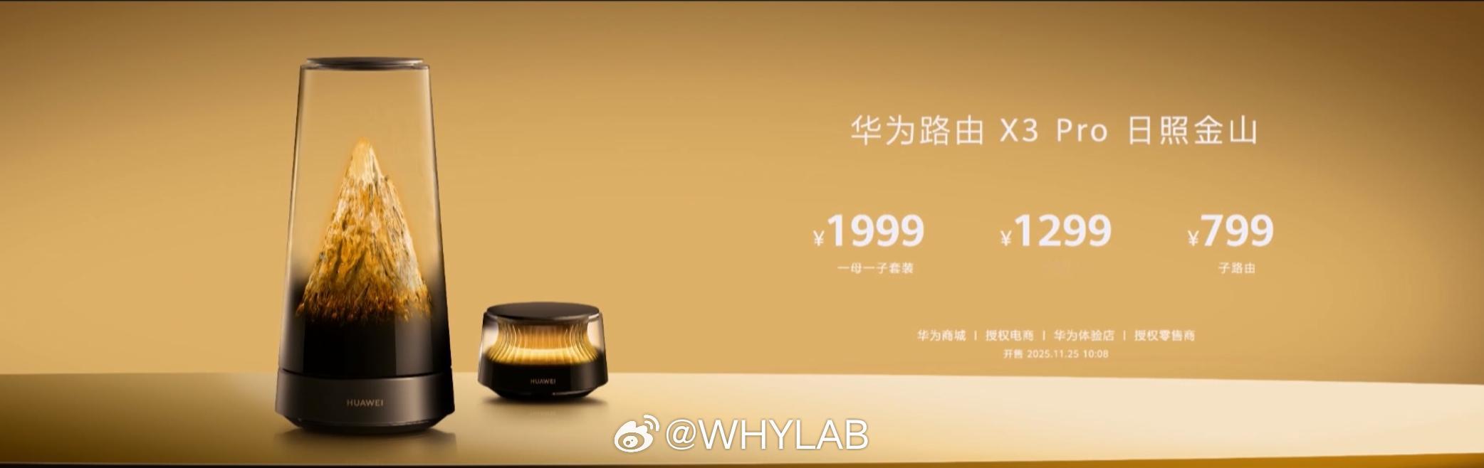 华为路由X3Pro日照金山,一母一子套装售价1999元,单买母路由1