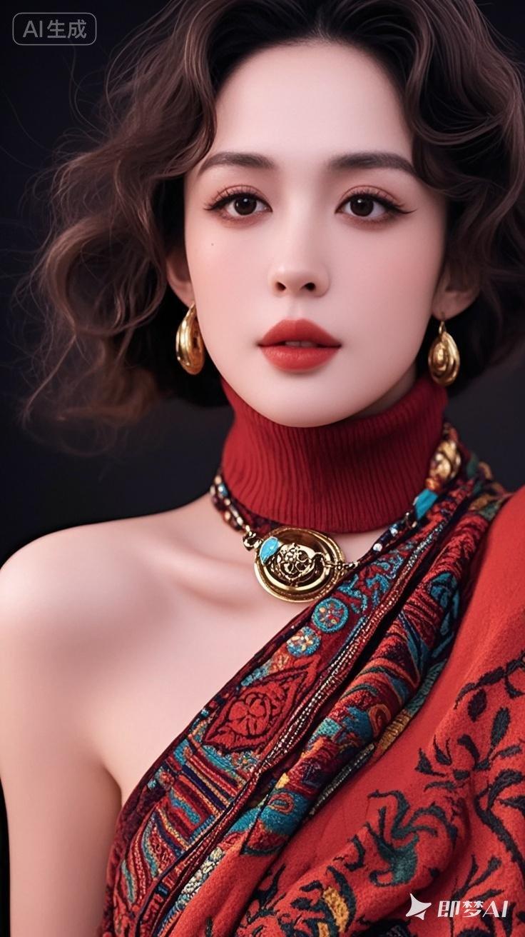 神秘东方美人,复古珠宝与现代妆容的完美融合。