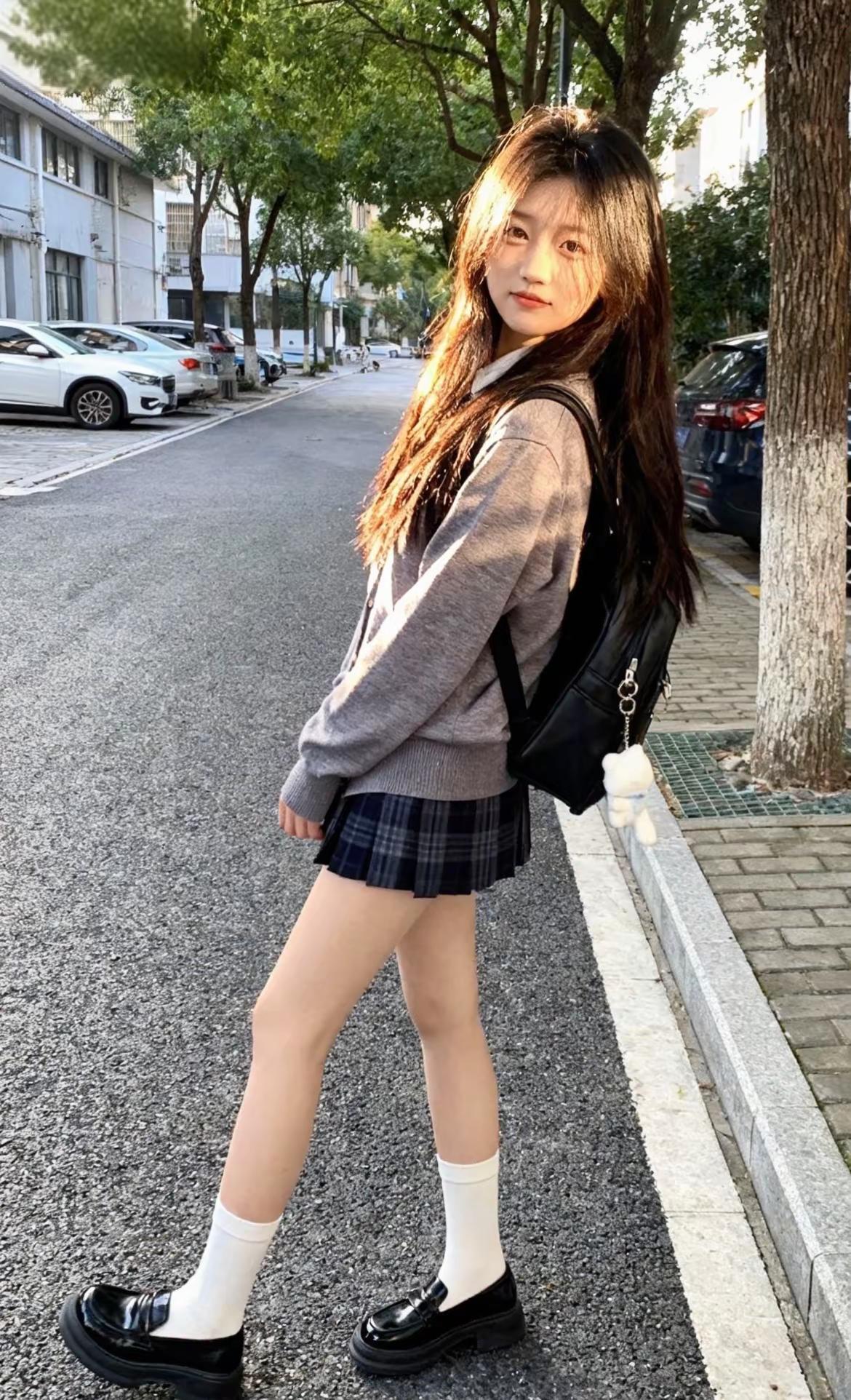 落日余晖,待你而归。jk穿搭 学院风穿搭 街拍穿搭 日常街拍
