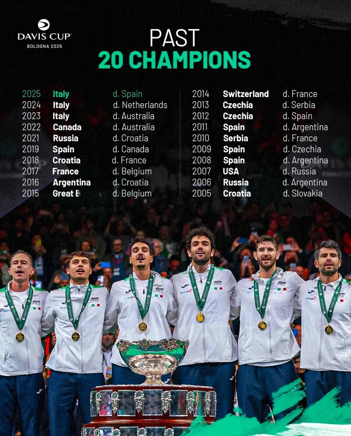 意大利男女队又双双夺冠🏆🏆2025戴维斯杯冠军🇮🇹2025比利简金杯冠军