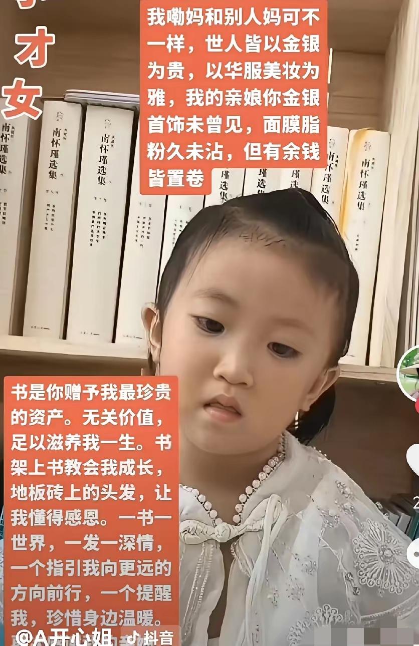 这孩子绝对,是个小天才! 她说那些话,拿着本子一句一句教我说,我也可能词不达意,可能念错行。 谁家的藏书少,你倒是让孩子看啊!言传身教,我愿意躺一会,也不愿意陪读。 只是有一事不明,这孩子,总在打哈欠,不知是何缘故? 愿她好好吃饭,好好睡觉休息。长大,有更重要的事可做。