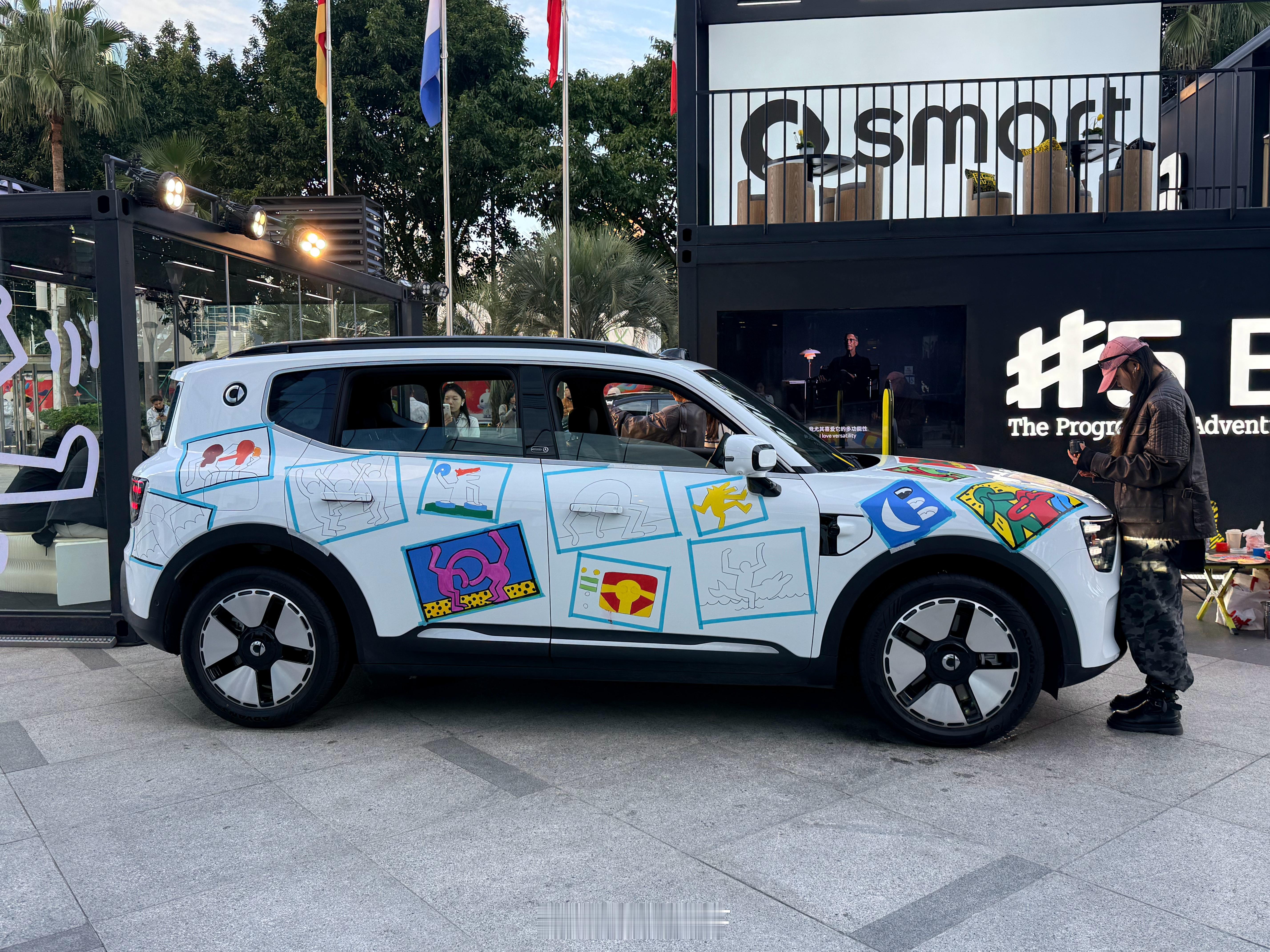 最会联名的汽车品牌——smart艺术联名的门槛其实蛮高的,但smart每次都能玩出新花样,这次又和Keith haring一起搞起街头艺术,这个“跳舞小人”是谁的DNA动了这次smart 3 Keith Haring艺术特别版,车身全黑涂装,侧面、尾部都有Keith Haring标志性的“跳舞小人”图案与艺术家签名;搭配19寸“艺术风暴”专属轮毂,轮毂中心还嵌入了微型艺术标识;车辆解锁时,专属迎宾灯会投射出“跳舞小人”光影。真的好特别只能说smart就是当之无愧的行走的艺术品