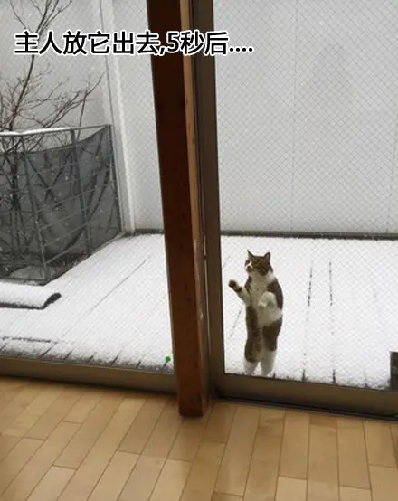 猫咪看到下雪好奇要出去玩,结果给它开了门之后...