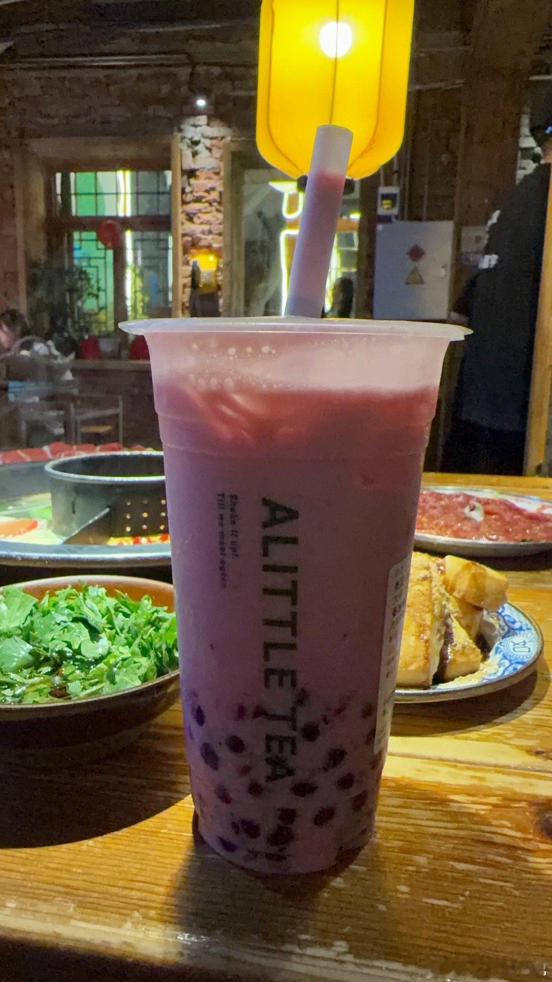 昨天吃的麻辣火锅➕一点点,非常苏轼现在又去买我的神 一点点蔓越莓奶绿加波霸三分糖换四季青茶底