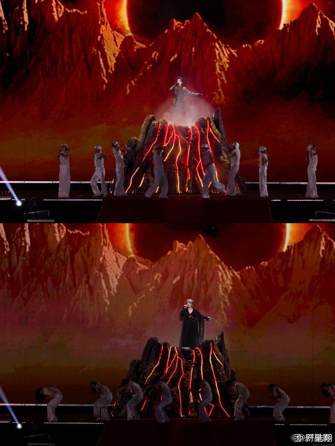 严浩翔站在火山上这个舞台的设计真的是非常的炫酷的!完全是山顶上的男人了,太喜欢这