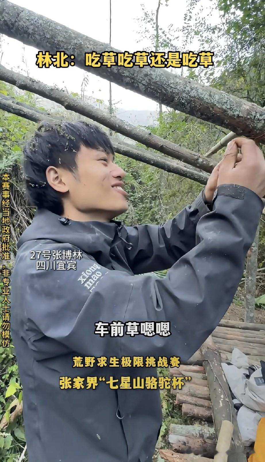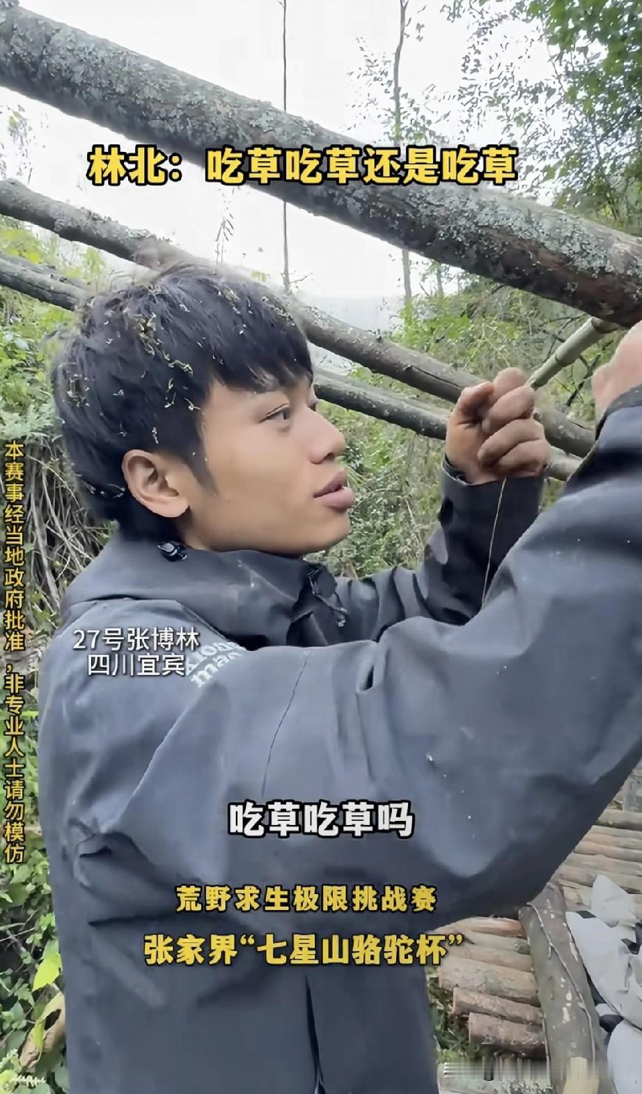 荒野求生林北是“荒野干饭王”! 27号四川小伙张博林,搭房时被问“今天吃啥”,咧嘴报菜名:车前草、折耳根、树莓样野果、棕榈树心、火棘…还拍胸脯:“今天吃老多了!” 这哥们是来参赛还是来“野菜探店”的?别人啃压缩饼干,他把七星山吃出了“自助野菜宴”,头发挂着草屑还乐呵——合着搭“观星豪宅”是为了饭后赏景? 网友吵翻:这算“求生技能拉满”还是“钻了比赛规则空子”?毕竟荒野赛是比“活下去”,还是比“活得滋润”?