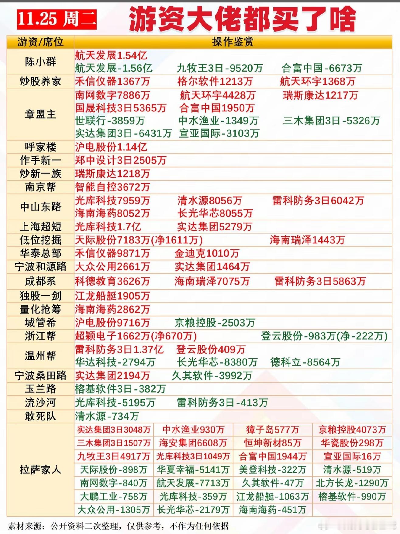 11月25日游资龙虎榜