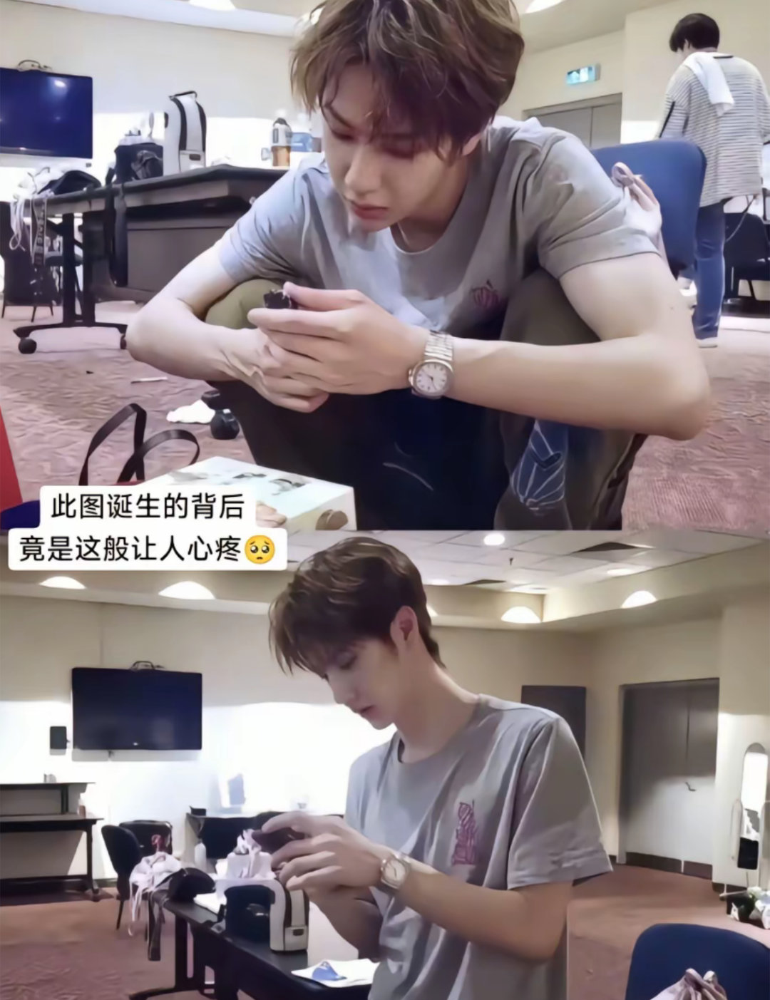 这张神图的背后是王一博粉丝给他的所有零食都不见了🥲🥲