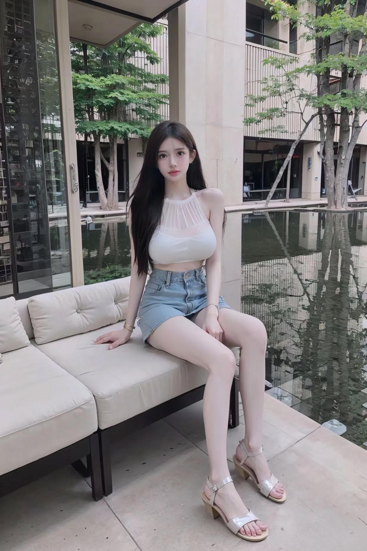 夏日清新穿搭,白色上衣+牛仔短裤,搭配黑色小包,轻松自在!