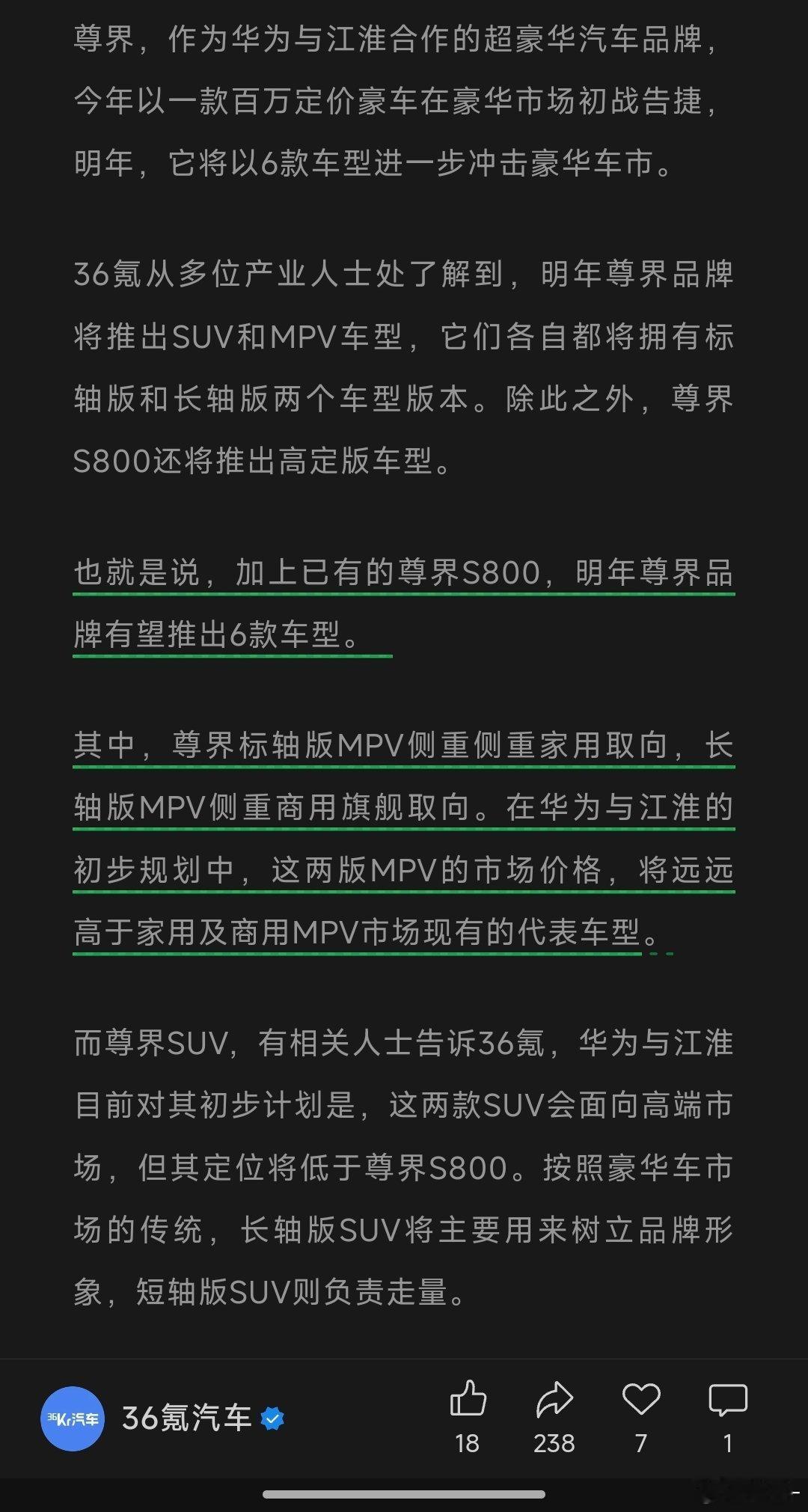 36氪汽车消息,明年尊界要产品大爆发啊6款车型,短轴版,长轴版SUV,MPV产品超豪汽车市场要变天了?