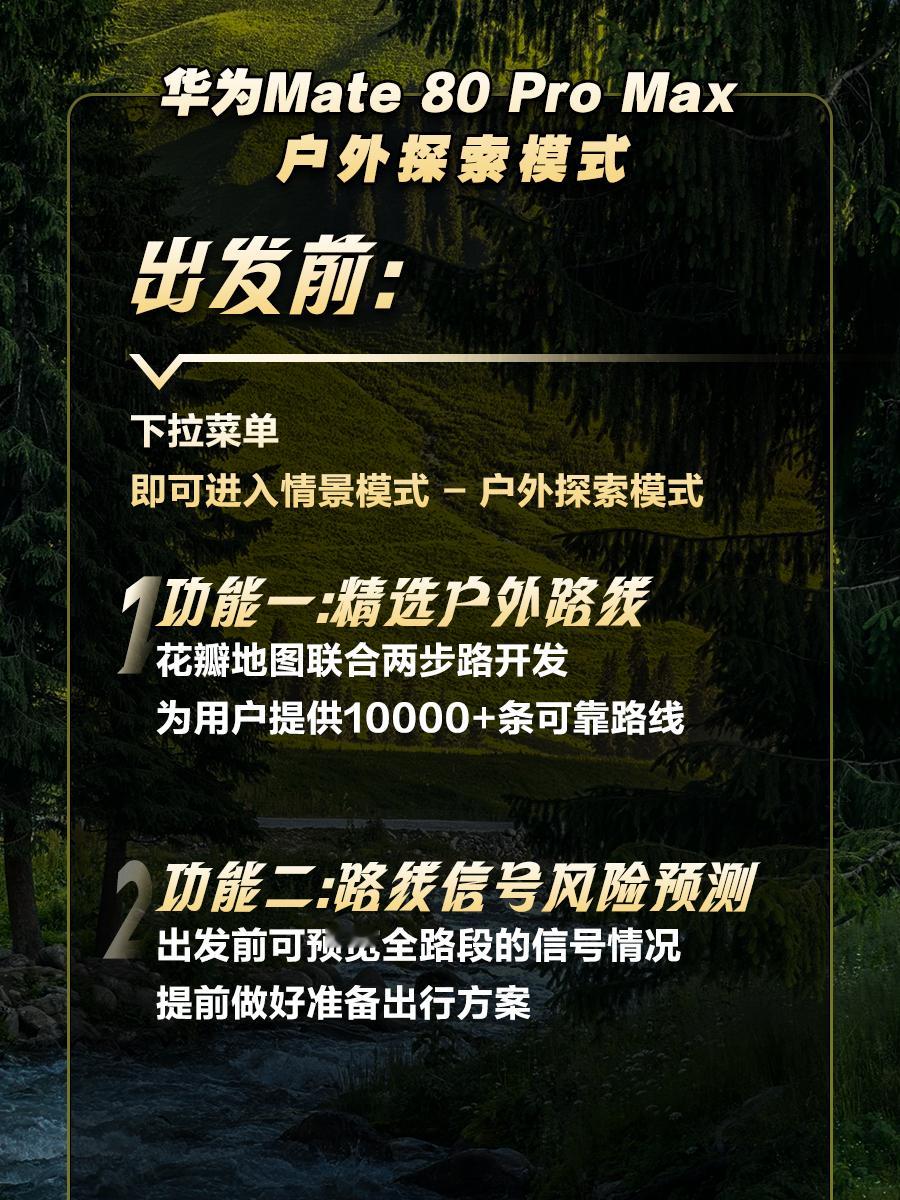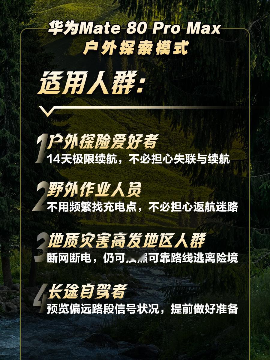 2025年11月25日14:30,华为发布全新旗舰矩阵——Mate 80、Mate 80 Pro、Mate 80 Pro Max还有Mate 80 RS 非凡大师!发布会全程盯着“创新黑科技”,但最让我上头的还是那个全新“户外探索模式”。预热的时候光被14天极限续航吸引了,还以为这模式只能凑活待机,结果今天直接被打脸!它深度融合花瓣地图和两步路平台资源,居然有10000+条专业户外路线,实景照片、海拔爬升、路况提示全给你标明白。记得夏天强降雨有些地区断路断电断网,这手机多一天续航就是多一丝希望,真得买。而且现在手机搭配鸿蒙6操作系统的智能调度,响应又快操作又直观,复杂环境下规划出行也超简单。关键鸿蒙生态适配度都超98%,还有卓易通能装小众App,功能又全又好用。现在手机厂商都在集体涨价,华为Mate 80系列还能加量不加价,这波真的香到没朋友,冲就完事了!