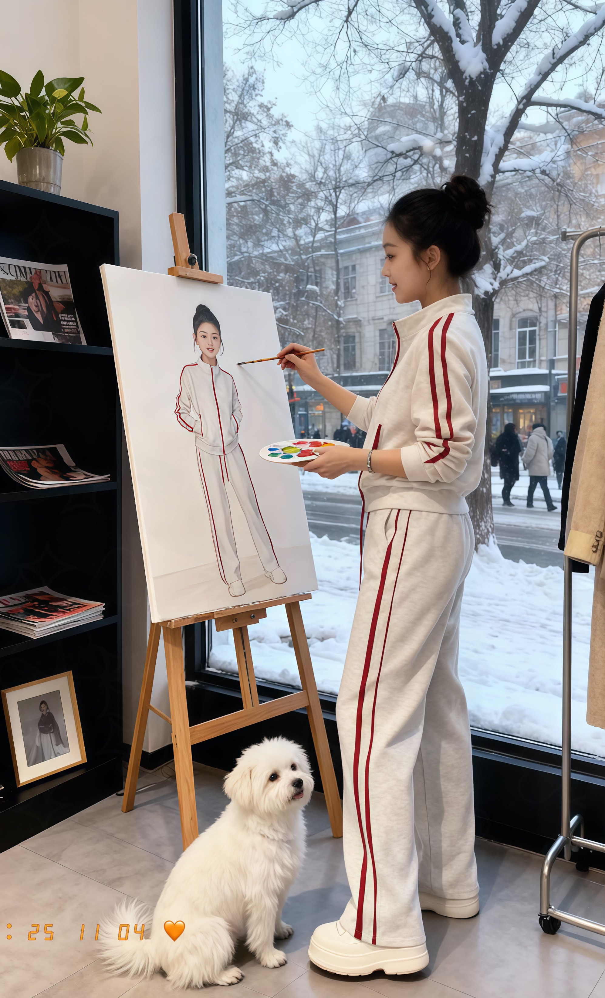这一套我直接焊在身上!谁穿谁是氛围感美女💃 姐妹们!今天挖到的这套真的戳中我心巴了! 米白+酒红边的配色太温柔了!自带韩系松弛感~ 上衣是立领拉链款,版型宽松不贴肉,胳膊有肉肉也能藏住! 裤子是垂感阔腿裤,高腰+抽绳设计,腰腹有空间还显腿长! 面料软乎乎的,贴身穿舒服到不想脱! 日常通勤、逛街约会穿都合适,随便搭个包包就很出片! 喜欢这种慵懒又精致的风格的姐妹,别等啦~