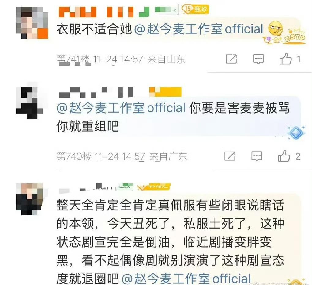 赵今麦因为妆造太土,工作室被粉丝吐槽! 真的不怪粉丝们如此激动,主要是赵今麦的工作室真的无论给她接的剧,还是剧里剧外的妆造,好像在努力给她拜托童星的影子,但忽略了赵今麦今年才23! 赵今麦 赵今麦工作室审美