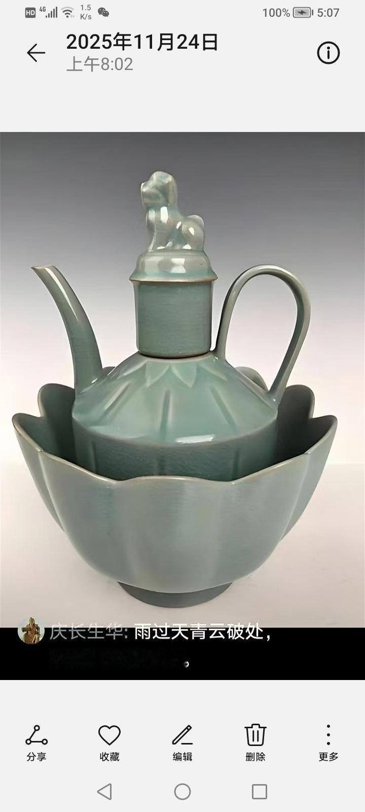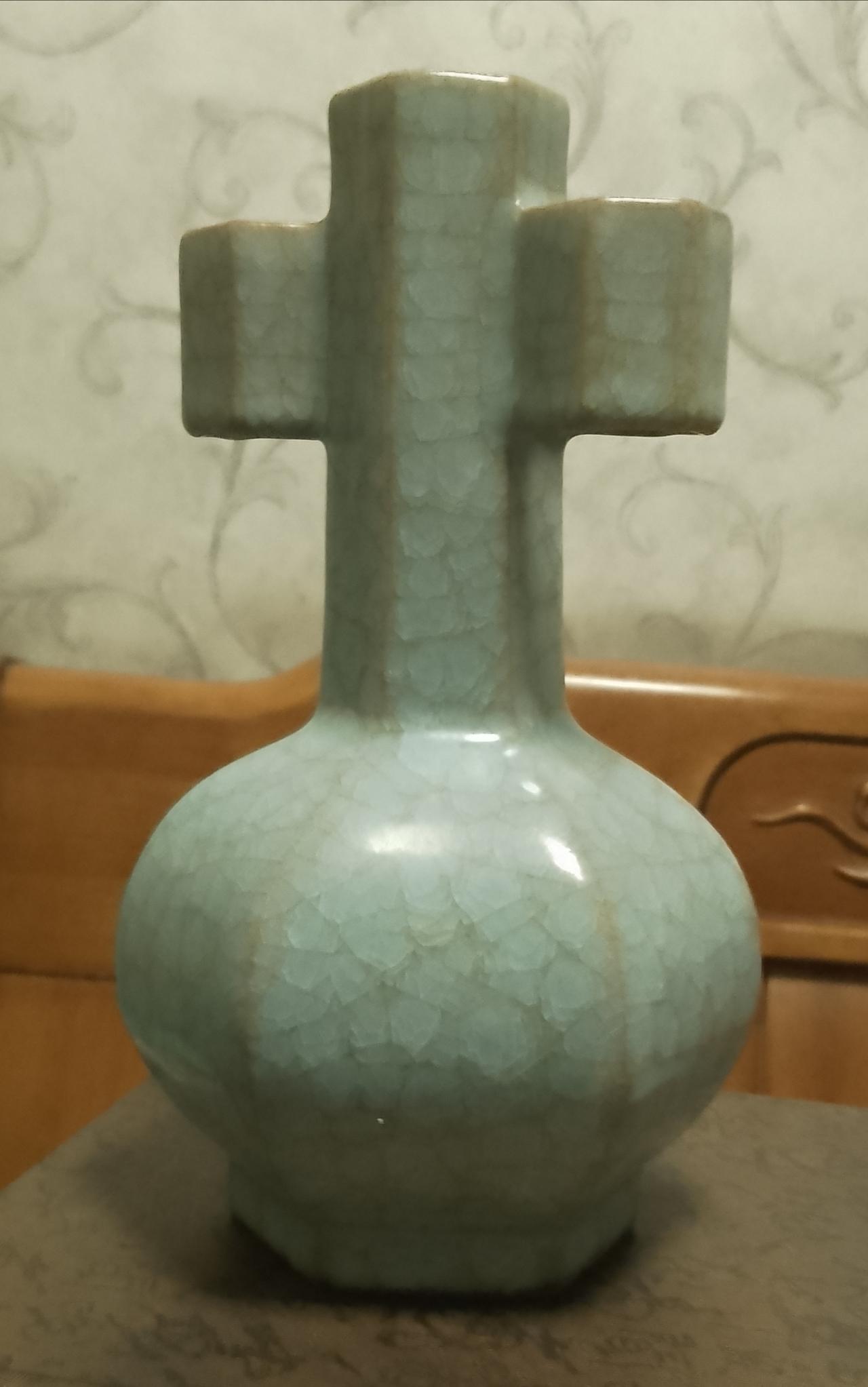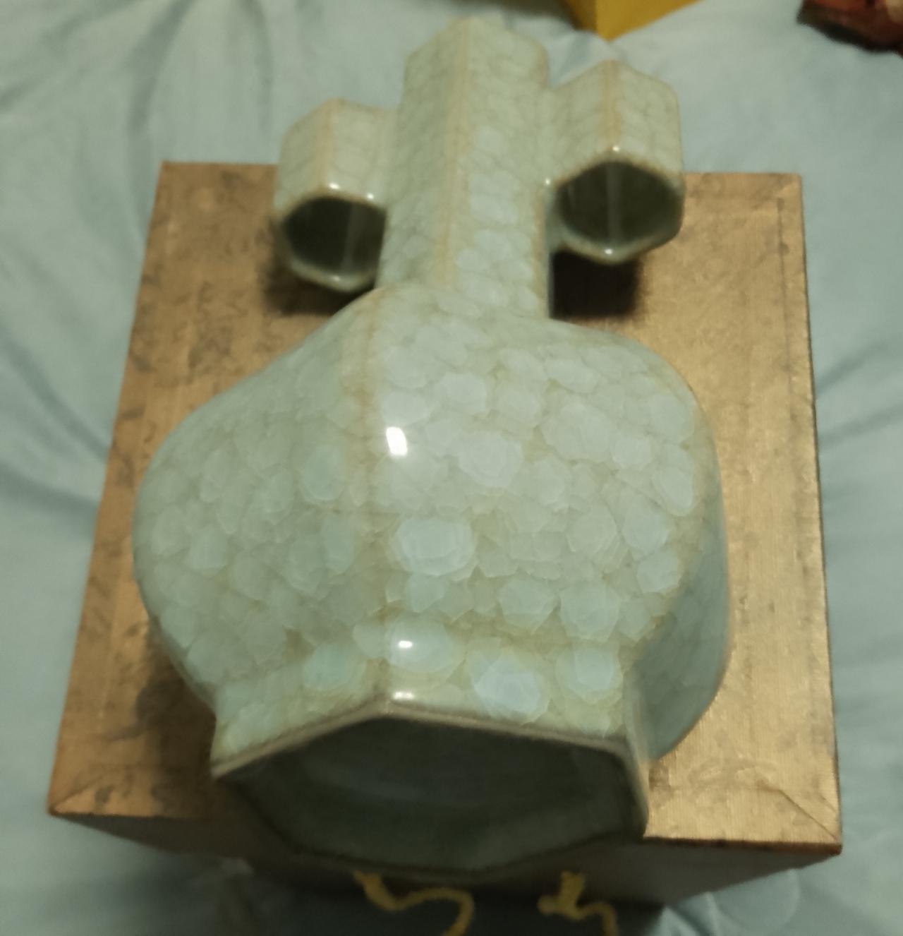真正的北宋汝瓷是什么样呢? 真正的北宋汝瓷,那可是瓷器界的王者。它位居宋代“汝、官、哥、钧、定”五大名窑之首,有“汝窑为魁”之称。 汝瓷造型古朴大方,多仿青铜器和玉器,像出戟尊、玉壶春瓶等。它以名贵玛瑙为釉,釉色以天青为主,有“雨过天晴云破处”的绝美效果。釉面开片独特,有蝉翼纹、梨皮纹、蟹爪纹等,“蟹爪纹”开片似鱼鳞,斜着有折光率,美极了。 汝瓷胎是浅灰色,像香灰,且胎薄,还有胎和底同厚的工艺。尺寸大多不大,“钧汝不过尺,钧汝无大器”。难怪从古至今,汝瓷都视若珍宝,能与商彝周鼎比贵。