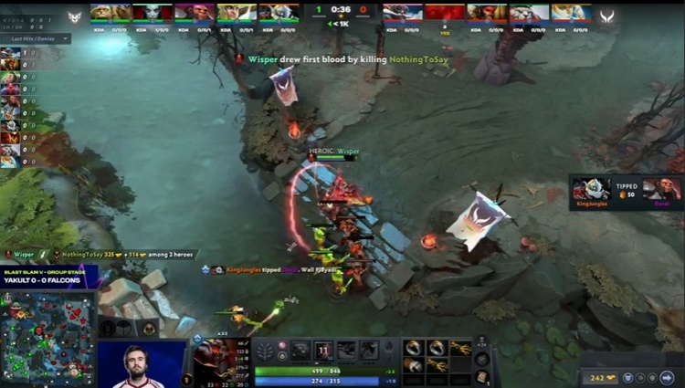 [0分钟]NTS影魔被Wisper痛苦女王跟上来毒镖击杀送出一血。