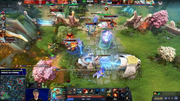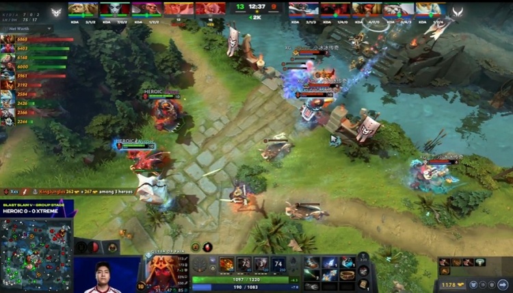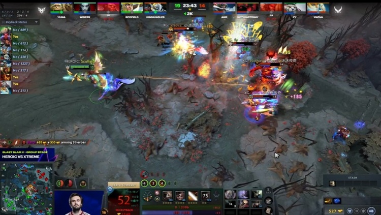 [53分钟]XG带超级兵上高,Wisper痛苦女王核Scofield天怒双大招打掉Ame飞机盾,但是飞机起来以后,Heroic无法处理,随着女王、帕吉先后阵亡,Heroic打出GG,XG有惊无险拿下本轮。