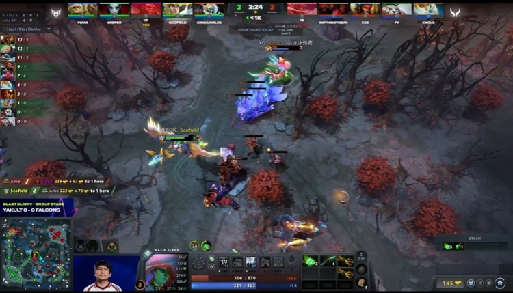 [19分钟]fy海民跳刀第一波,帮助NTS影魔反杀Scofield天怒,随后XG控下魔方,扳平经济差距。