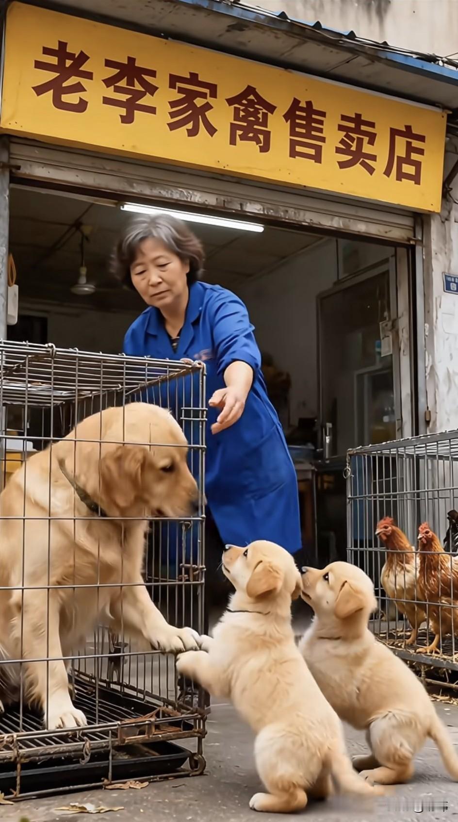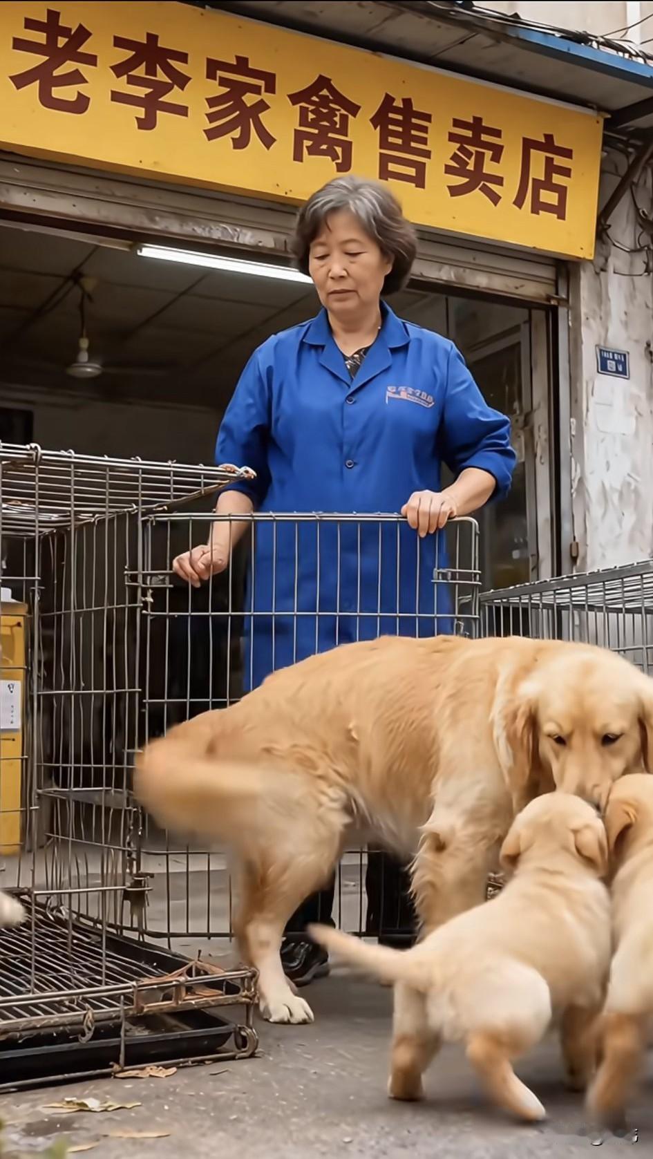 太感人了!一位阿姨开了家家禽售卖店,这天有人卖给它一只狗妈妈,她把它关在一个铁笼
