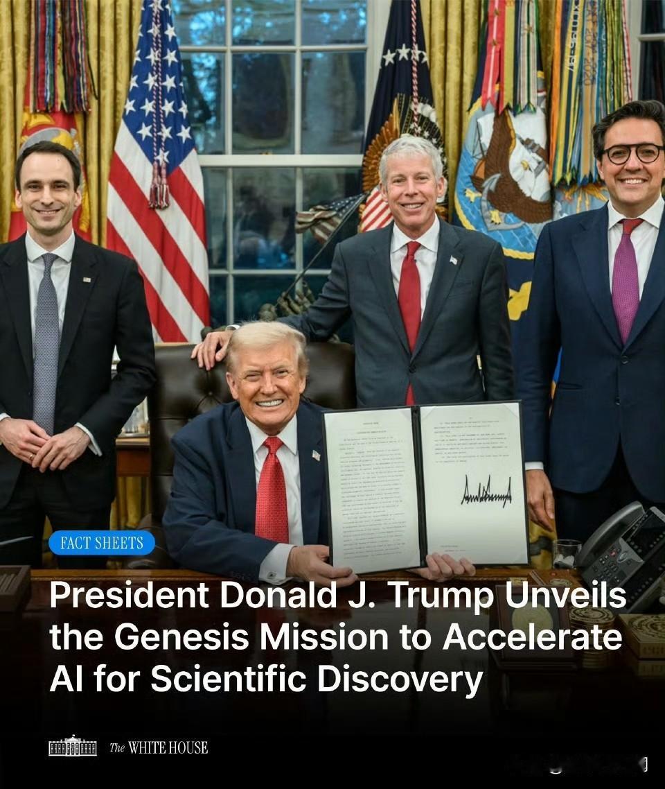 川普总统启动了“创世纪计划”(GENESIS MISSION)——一项旨在利用人工智能加速科学突破并推动美国进入创新黄金时代的全国性计划。 这可以被看作是人工智能时代的“曼哈顿计划”。