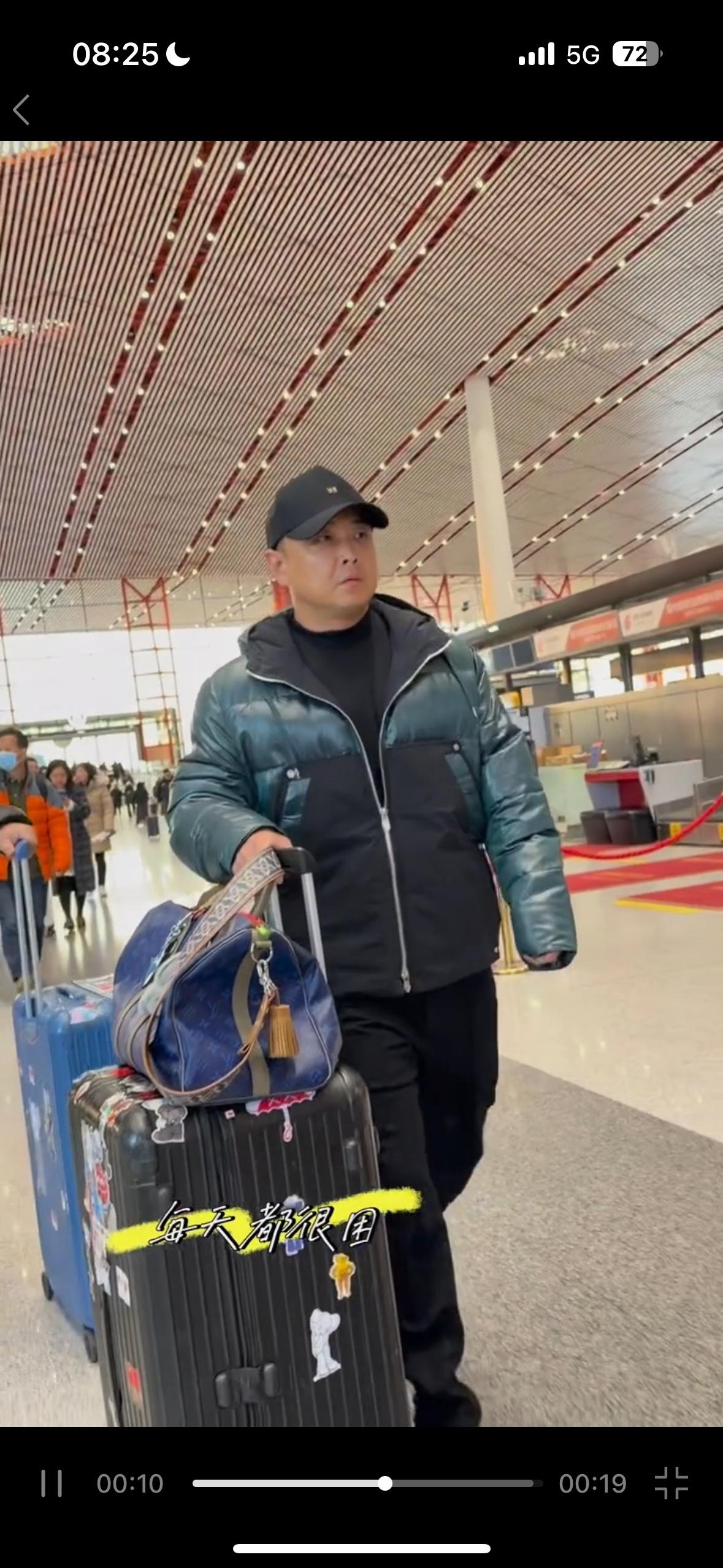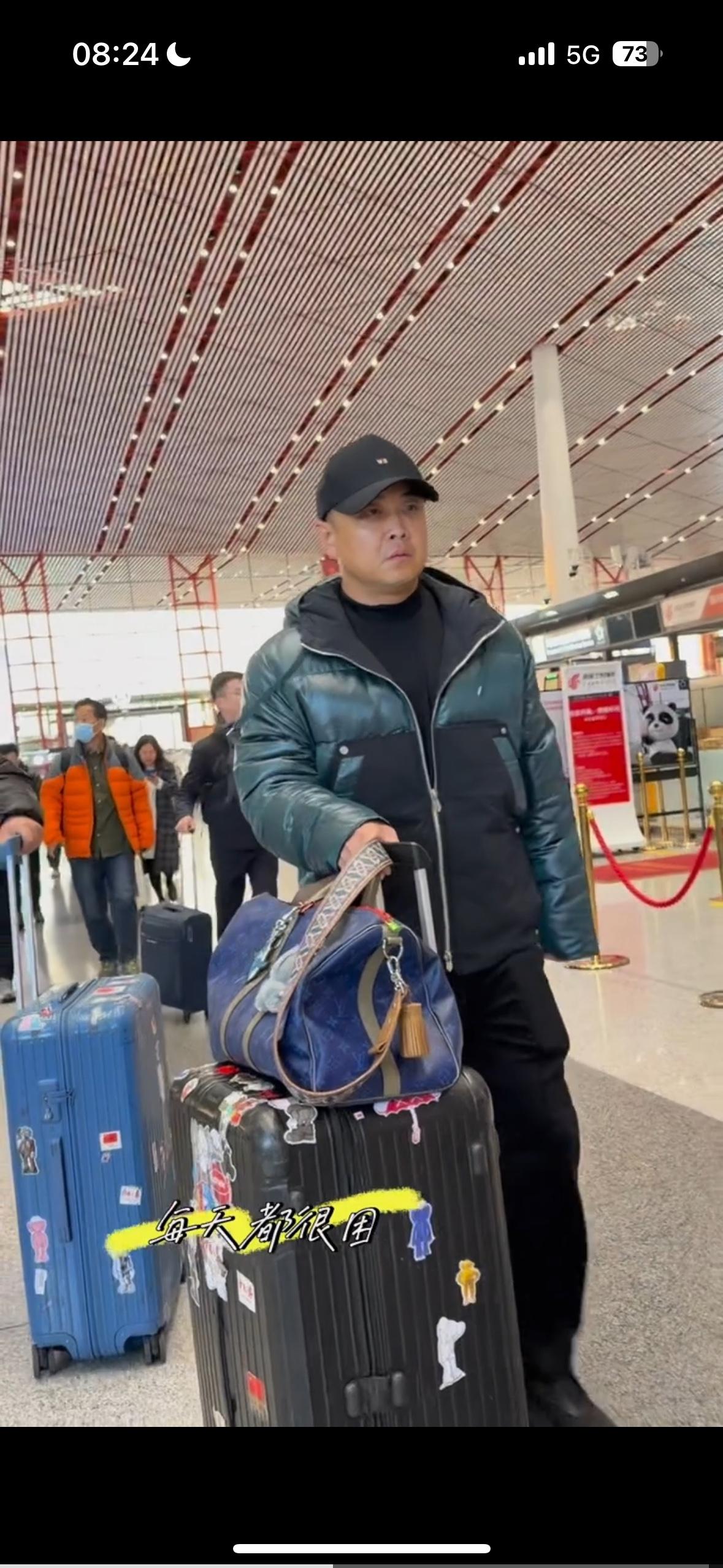 王皓出发了,成都混团必须要上班了,一上班整个人都严肃起来了,没有笑模样! 状态和前两天不一样,前后行李箱都有卡通人物,这是家里两个儿子选的吗,白告提着这行李箱多少有点显眼包,可爱俏皮的感觉,和他的状态多少有点差别,既然都上班了,就开心了哈!
