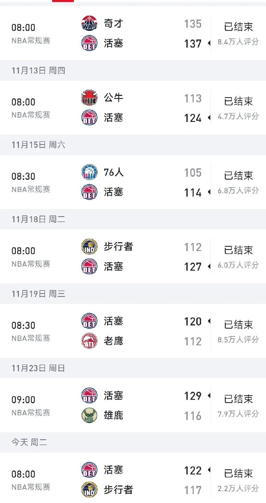 都在吹活塞十三连胜,怎么不研究下活塞赢的都是谁?从输骑士21分开始活塞开启连胜到目前没有停,第一战赢的是魔术,随后就是独行侠,灰熊,爵士,篮网,76人,奇才,公牛,76人,步行者,老鹰,雄鹿,步行者。3战西部球队,这三支西部球队排名全部都是第十名以后,剩下10战东部球队,和76人,步行者分别打了2场,步行者纯送,76人动荡也没有威胁,其他球队比如篮网,奇才也是送人头的,而雄鹿没有了字母哥也是陪跑,稍微有点含金量的可能就是目前势头正盛的老鹰,和前段时间势头正胜的公牛,这两场比赛活塞都终结了他们的连胜,所以活塞的连胜跟赛程还是有一定的关系!