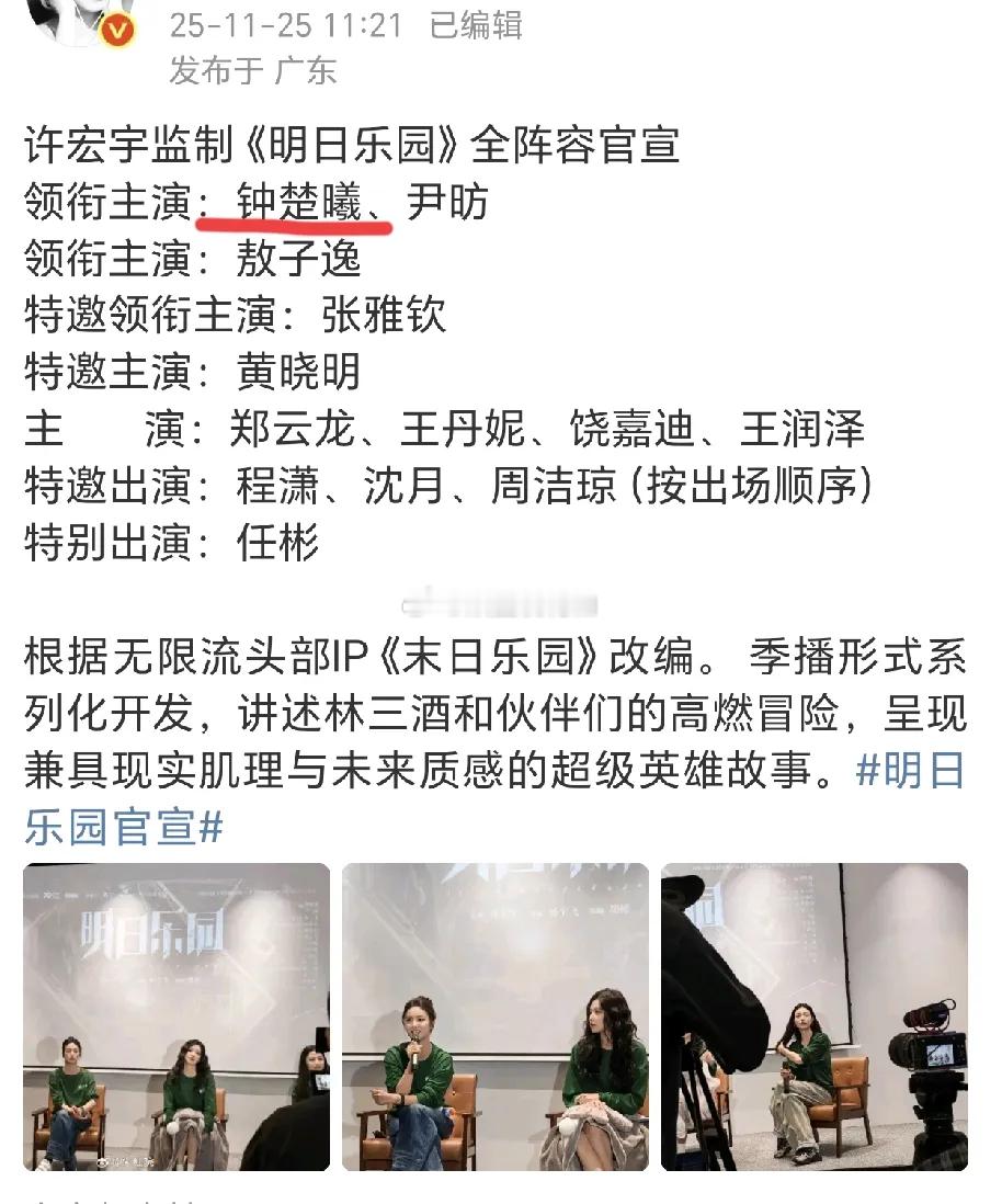 看来钟楚曦i拿到金鸡“最佳女配角”之后,红利真的很大,《明日乐园》这个大IP应该算很香了,它不仅仅是目前市场最流行的题材无限流,关键她还是这个题材中为数不多的大女主题材。