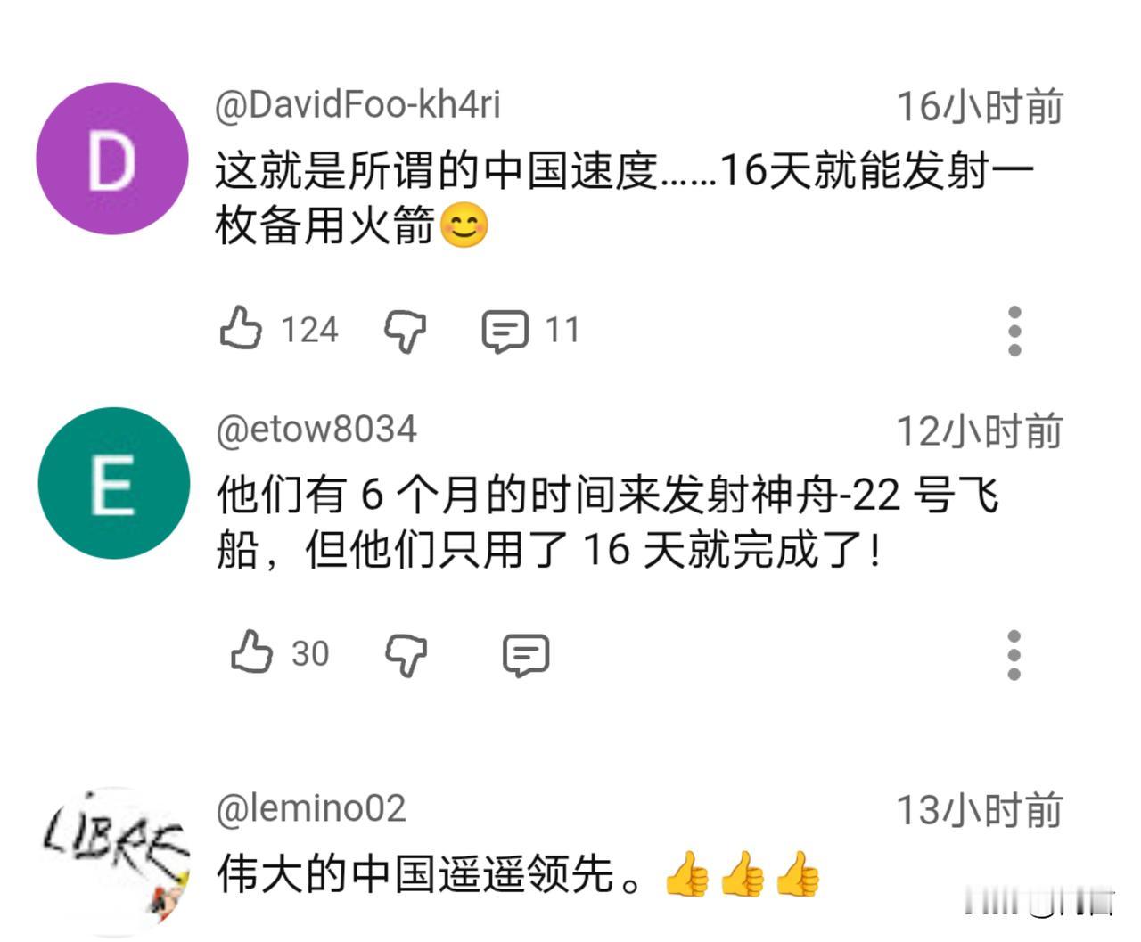 仅过了十一天时间!老外:这就是中国速度。 11月25日,神舟22号飞船从东风航天场发射升空,3小时39分后飞船与天宫空间站顺利完成对接。 11月14日,神舟20号乘员组搭乘神舟二十一号飞船返回地球。老外原以为神舟22号飞船发射至少要等到一月以后,甚至是更长时间。让他们没有预料到的是,仅仅过了十一天飞船就发射升空。 当今世界范围内,有能力发射飞船的国家已是屈指可数。而能做到这一步的,恐怕也只有我们了…