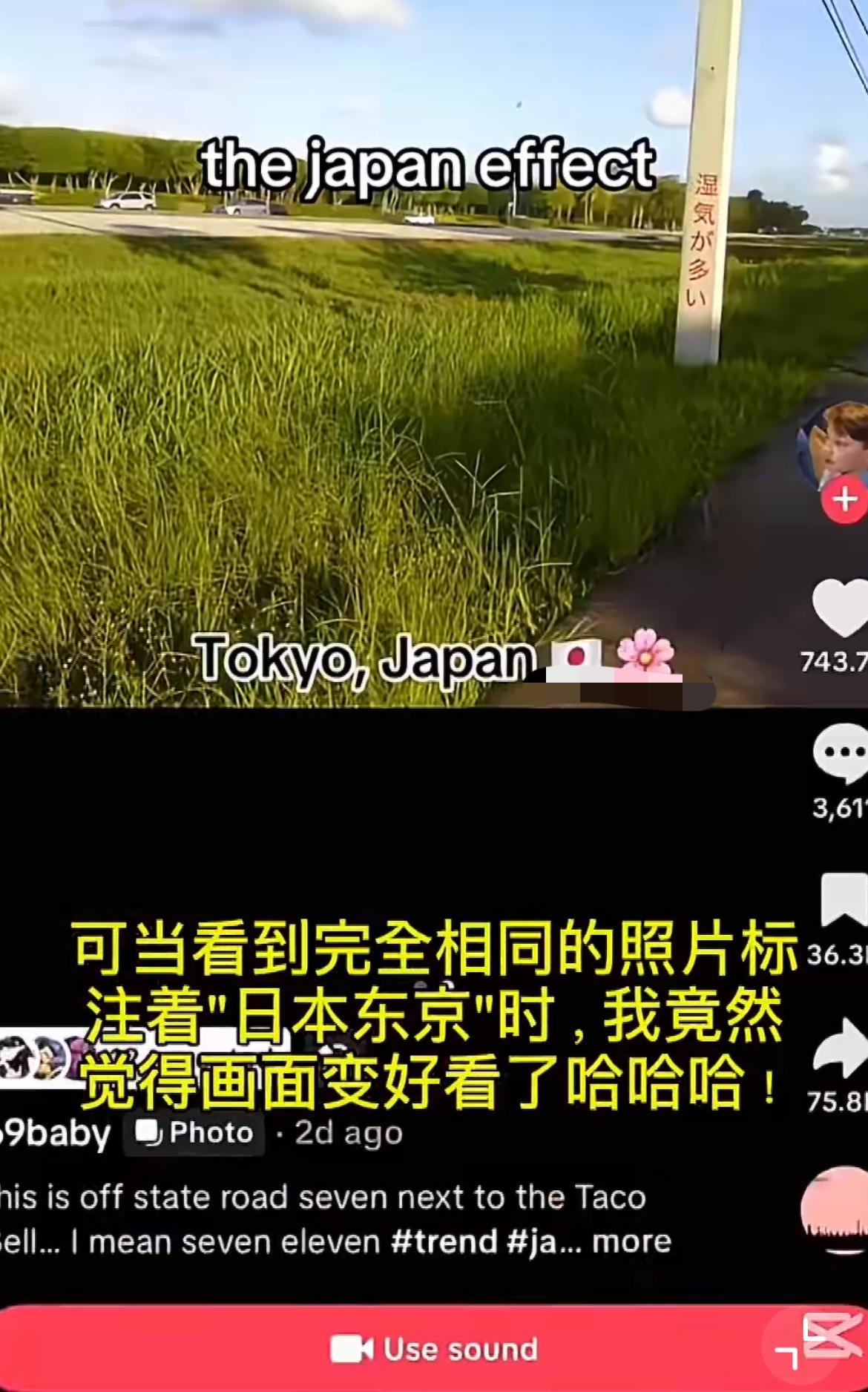 日本的宣传洗脑有多疯狂,外国博主发现只要标上日本评论区就会有很多赞美,比如放上一张佛罗里达的图片,如果地址这些弗罗里达,评论区“这是佛州很普通的街景”如果把这张图片标上东京,就会有很多日吹涌上评论区各种夸夸夸