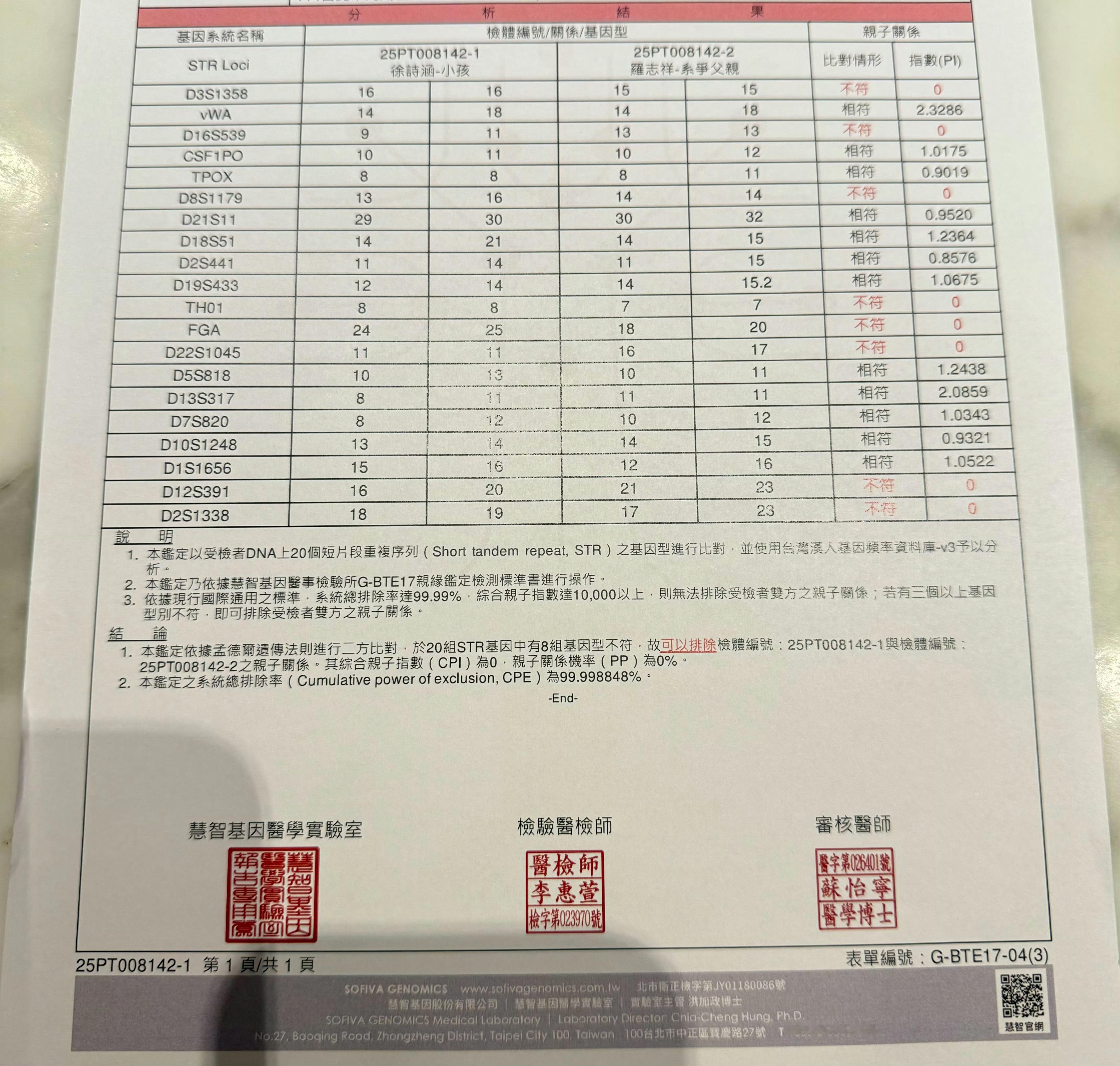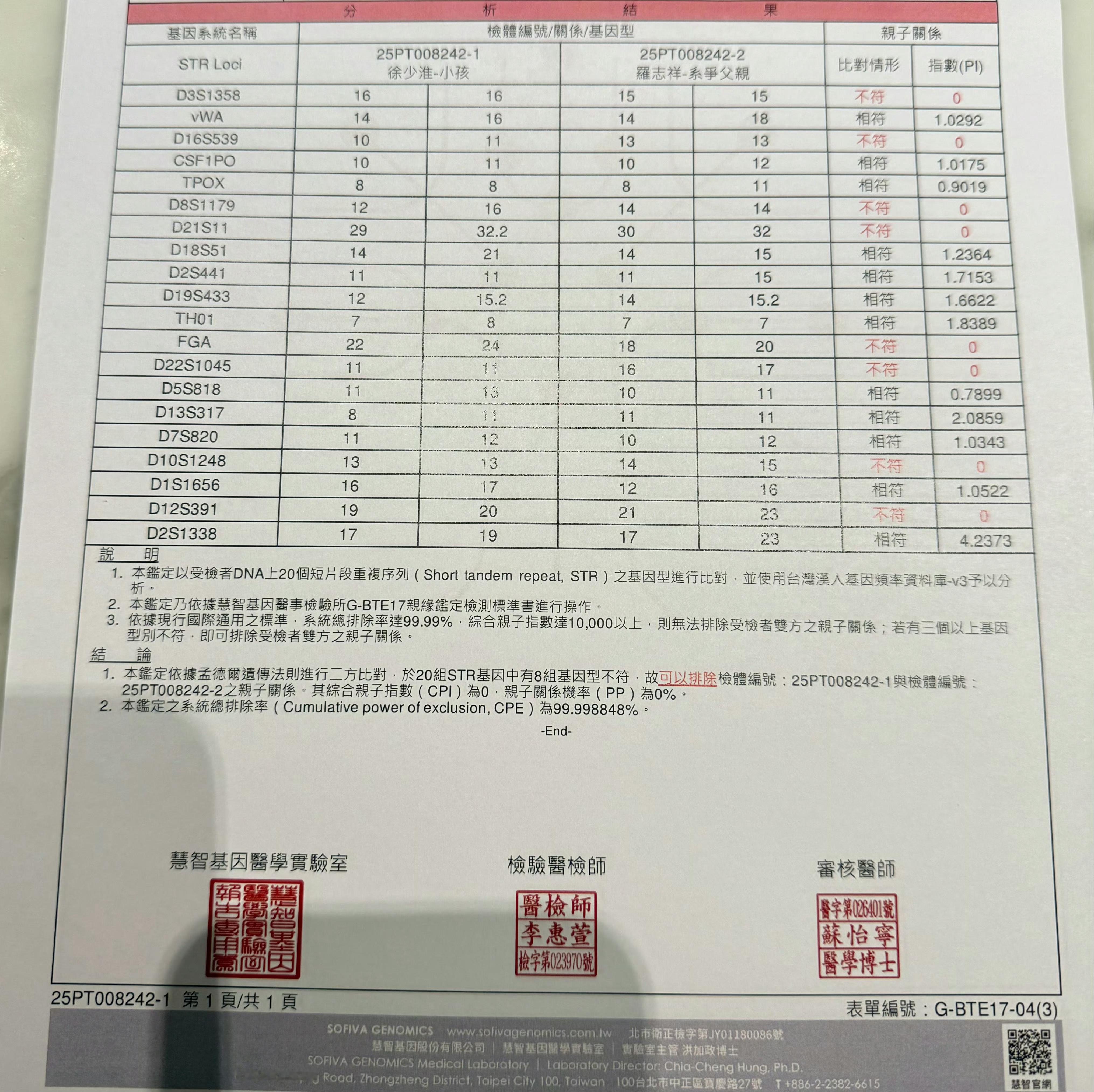 罗志祥和经纪人孩子做亲子鉴定罗志祥经纪人发文,并晒出了自己孩子和罗志祥做亲子鉴定的照片,亲子关系概率0%。前两天网传罗志祥曾考虑和经纪人结婚,并收养她的两个孩子作伴引发争议, 工作室也发了声明否认。