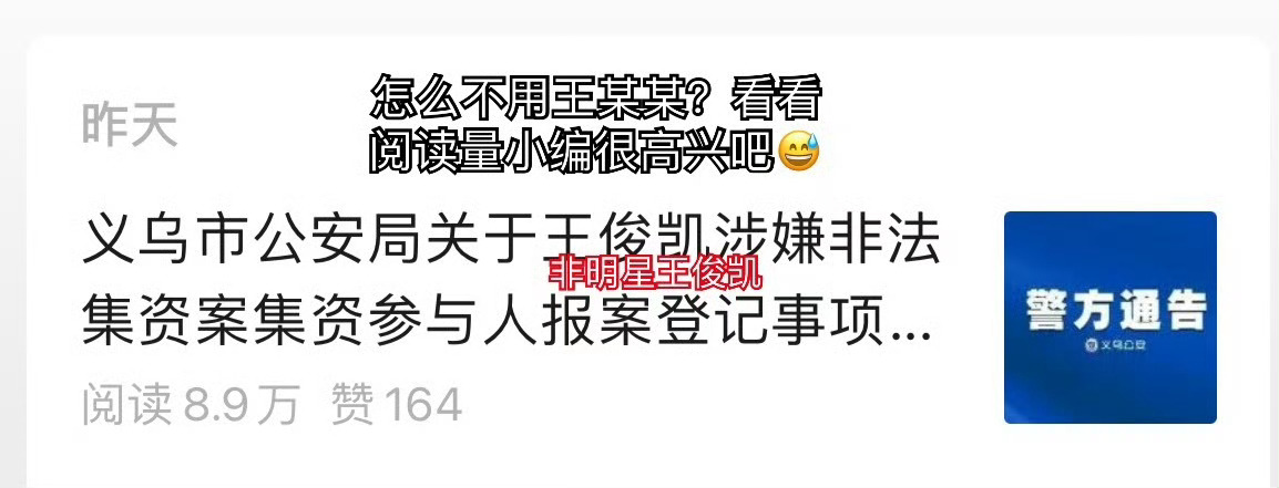 36岁王俊凯涉嫌非法吸收公众存款被立案侦查不是王俊凯粉丝都要骂无良媒体的程度,别人都是王某某,林某某什么的,就因为和王俊凯重名,就为了博流量,所有人都认识明星王俊凯,明星郭美美事件要重演吗?