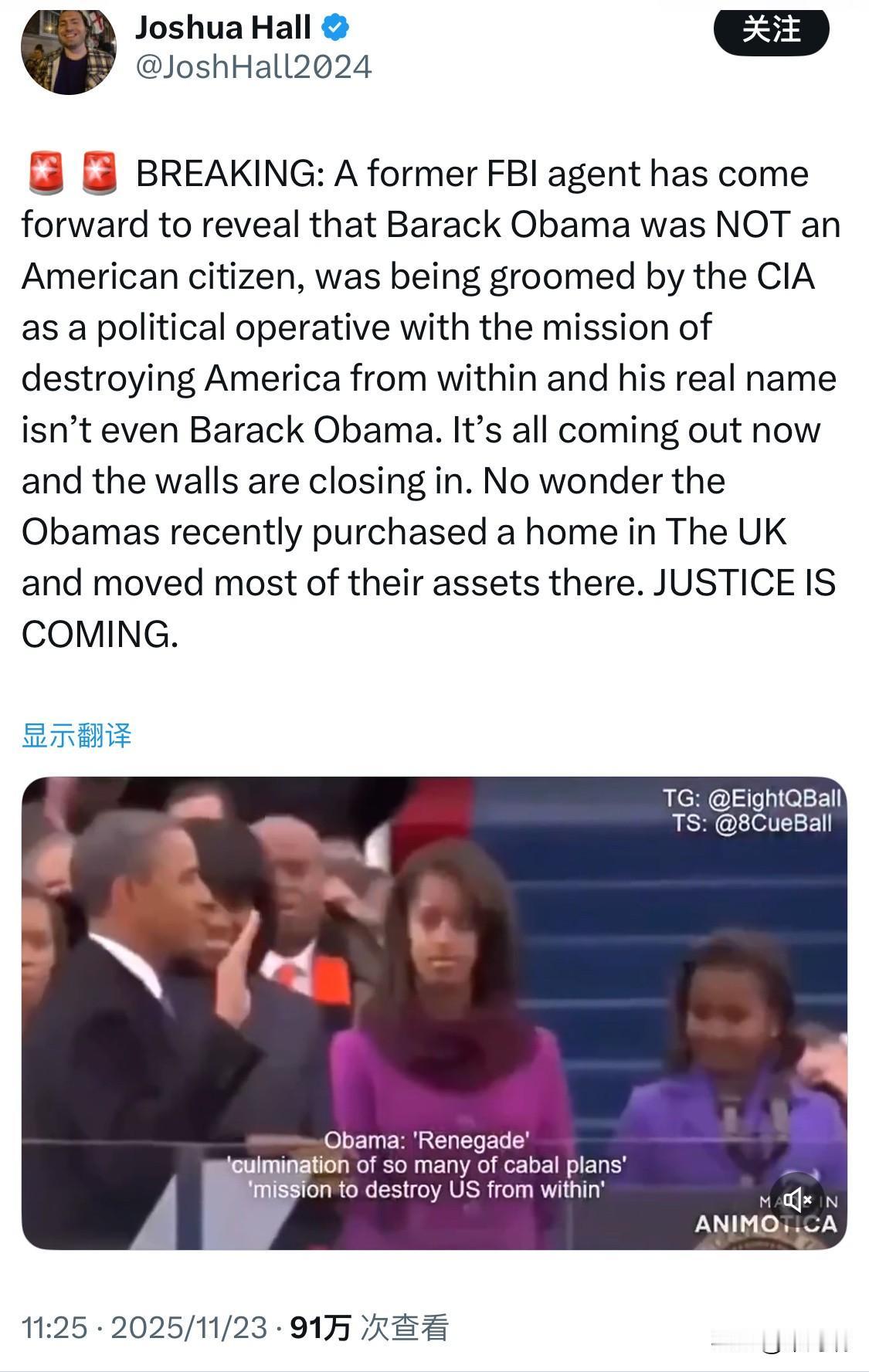 突发新闻:一位前FBI特工挺身而出,爆料巴拉克·奥巴马并非美国公民,而是被CIA培养成政治特工,其任务是从内部瓦解美国,而且他的真名甚至都不是巴拉克·奥巴马。 真相即将大白,奥巴马夫妇的处境岌岌可危。 难怪他们最近在英国购置房产,并将大部分资产转移到那里。 正义终将到来。