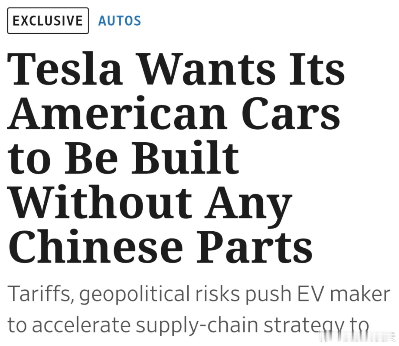 陶琳称中国供应链不构成排除性标准 这个表态对于我们来说是挺好的。但是,商业本身就是趋利避害的,中国汽车产业链的核心优势有三个,一个是完整的产业链,一个是非常有优势的成本,还有最重要的就是效率。最近各个国际车企的表态,本身是出于地缘风险的考虑。前几天,有报道说特斯拉北美要排查中国的供应部件,这次陶琳的回应,算是对这报道打上了“不实”的标签。她说:无论是美国、中国还是欧洲,Tesla全球各生产基地的供应商选择都采用同样严格、客观的标准,完全基于质量、总成本、技术能力成熟度以及长期供货连续性。供应商的原产国或地理来源不构成排除性标准。 大v聊车