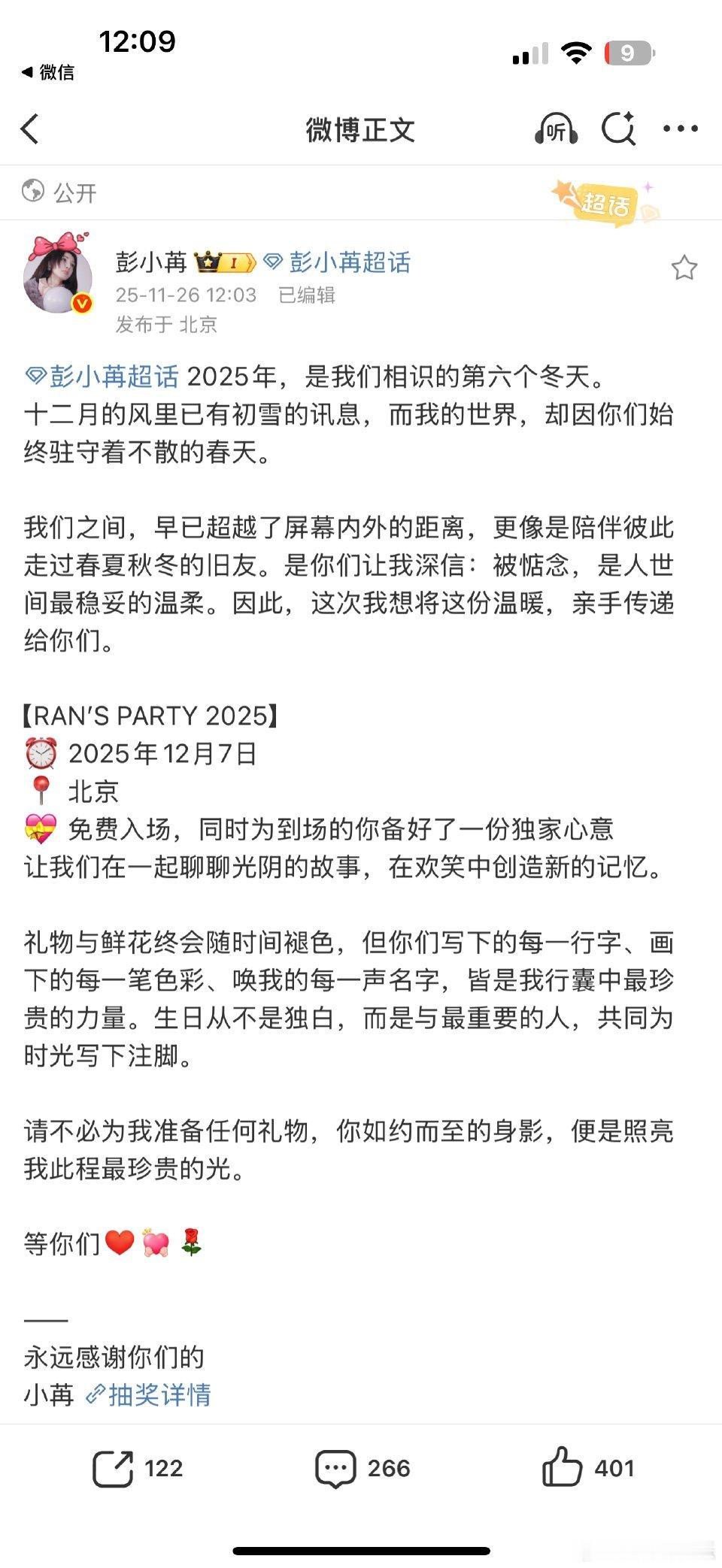 彭小苒 请不必为我准备任何礼物 彭小苒的暖心发言太圈粉!感恩粉丝不离不弃的陪伴,直言无需礼物,粉丝的身影就是照亮她的光,这份真诚真的太让人动容!