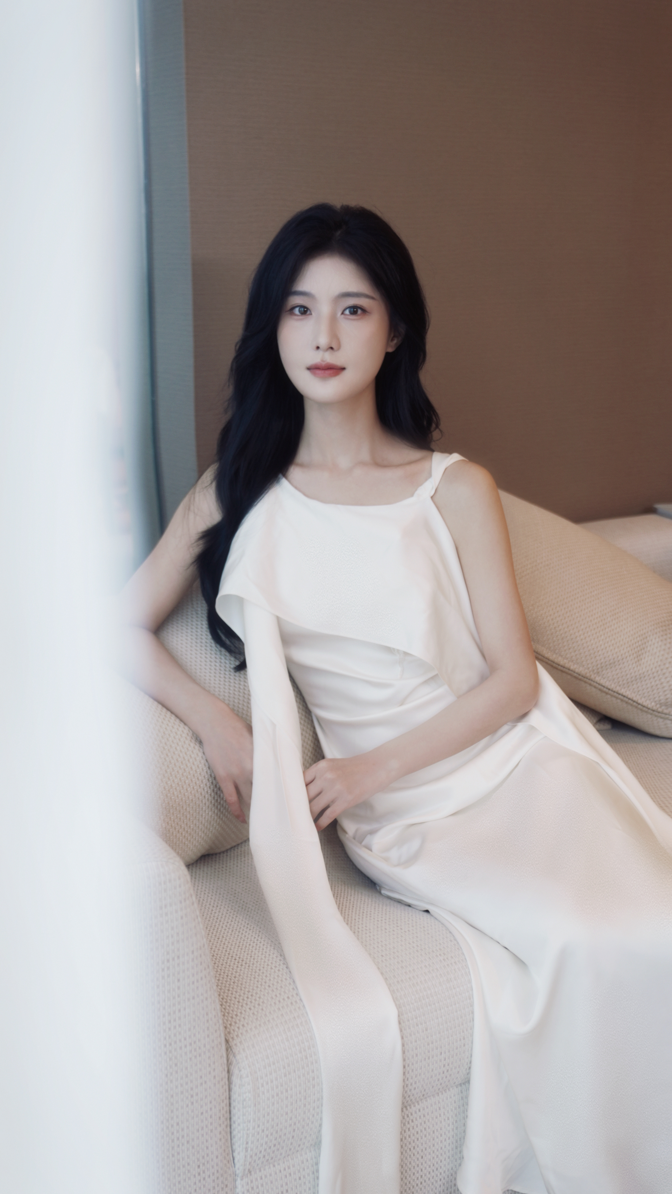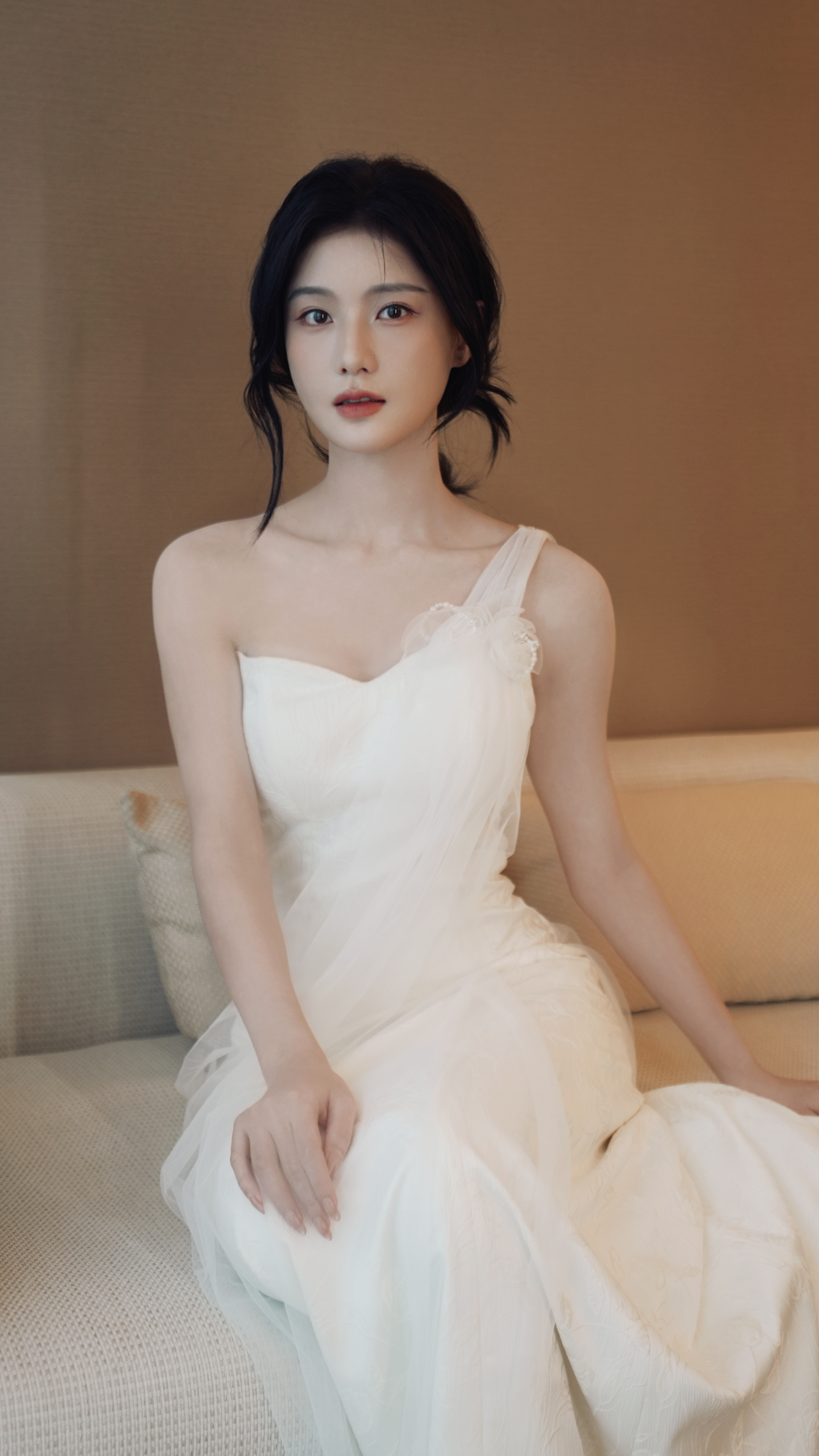 陈意涵 一袭奶白纱裙,温柔又清冷。发丝缱绻间,自带氛围感。举手投足间,满是优雅与松弛的气质。