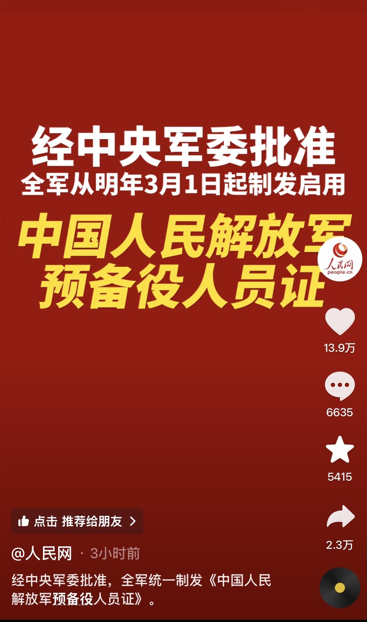 好家伙! 熊猫家预备役的战友们终于拿到了自己的专属"身份证",明年3月就正式能用啦!这波操作也太给力了! 看到这消息,我心里那叫一个激动,预备役兄弟们等太久了,终于有正式身份咯!新证件内页硬壳设计,防伪技术超厉害,编号还独一无二。 想想以前,我表哥当预备役集训,得带一堆证明文件,麻烦死了。现在一本证全搞定,方便得不是一点半点。老版军官证也该“退休”啦,新时代就得有新物件嘛。 这新证件不仅是身份象征,更是对预备役工作的重视。以后出行、办事说不定都更便捷。但我也好奇,这证到底啥样?坐公交能不能免费?你们最希望这证带来啥便利?预备役人员