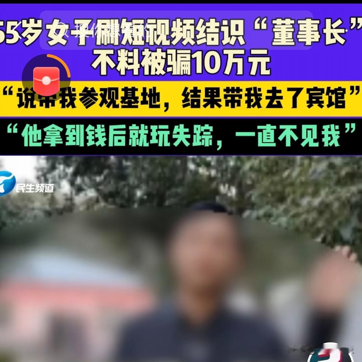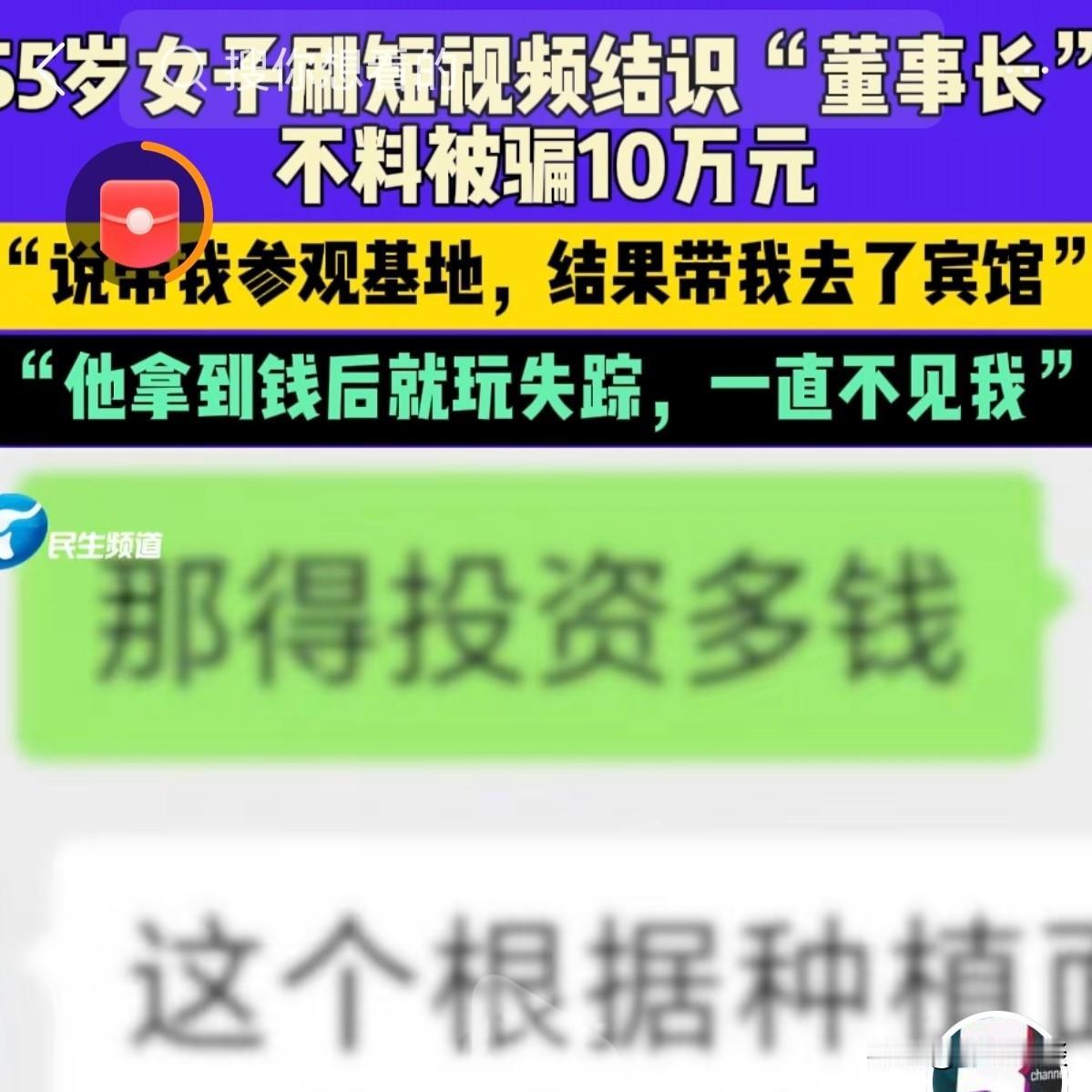 河南洛阳,55岁女子结识一董事长,没几天就把女子骗到宾馆开房,对她说自己喜欢她,女子信以为真,不仅给男子转了520元红包,还给了300元现金。男子更加体贴,承诺带女子赚钱,赚了分红,赔钱算他的,女子二话不说直接转了100000元。万万没想到,钱刚到账,男子就彻底联系不上了。女子这才发觉被骗,哭着找媒体帮忙! 都说害人之心不可有,防人之心不可无,张女士省吃俭用攒下10多万养老钱,被男子甜言蜜语骗得精光。 55岁的张女士追悔莫及,联系不上男友,意识到被骗,顾不上面子,找媒体帮忙。 对着镜头她红了眼眶,男友说自己是公司董事长,穿的都是名牌,说话又实在,怎么也没想到会骗人。 今年3月初,张女士像往常一样,闲着没事刷手机,偶然刷到一名陌生男子的账号,两人闲聊几句竟格外投缘。 当天对方就主动要了她的微信,往后日子里,男子时常主动找张女士聊天。 称自己开公司当董事长,这些年在外面飘着累了,年纪大了想找个伴有个家。 男子说话慢条斯理,言语间总透露着稳重,称自己事业有成,吃穿用度全是高档名牌。 可外人看着光鲜亮丽,但心里空虚,渴望找个踏实过日子的伴。 听着这些话,再加上聊天时对方的体贴周到,张女士渐渐动了心,对他多了几分好感与信任。 聊了一段时间后,两人约好见面奔现。 见面时男子穿着得体大方,开着看上去价格不菲的豪车,言行举止也透着“成功人士”的模样。 张女士渴望情感,一直心存幻想,见对方不但帅气还多金,之前的顾虑彻底打消。 男子突然要带她去自己的项目基地考察,还承诺能带着她一起发家致富。 满心欢喜的张女士只觉得遇到了良人,感动又期待地跟着赴约。 可男子没有带她去什么基地,竟直接把她带去了宾馆开房。 女子有些惊讶,男友却体贴地说,基地很远,先休息一下,劳逸结合,好容易见面,想唠唠嗑。 可到了宾馆,男子绝口不提考察的事,直白表达心意,说自己早已喜欢上她,想进一步发展关系。 张女士被这突如其来的表白,感动得忘乎所以, 以为遇到真爱,顺着他的心意俩人发生关系。 男子提起5月21号是自己生日,心思细腻的张女士记在了心里,她很珍惜这份感情。 5月20号当天,特意发了520元红包,寓意满心欢喜的爱意,生日当天,又拿出300元现金递给他,让他买件短袖穿。 要知道张女士平时日子过得格外节俭,几百块的衣服自己都舍不得买,给他花钱她心甘情愿。 想着男子平时穿惯了名牌,上千的衣服咱也看不懂,拿300元最多够他买件基础短袖,多少是自己的一片心意。 男子没有嫌少,还特别开心,说哪天不忙带她去大商场,给张女士挑几套像样的衣服。 收下礼物的男子愈发体贴,日常嘘寒问暖不断,让张女士彻底放下防备。 没过多久,男子找到张女士,说自己有个赚钱的项目,想带着她一起赚钱,要不是这层关系,他绝不会透露。 此时的张女士早已对他深信不疑,男子还拿出铁皮石斛购销合同、认真讲解项目细节,承诺项目赚钱后给她分红,赔钱算他的。 张女士看着合同上密密麻麻字,看不清也看不懂,她没有任何顾忌,当场签了字,分两次给男子转了10万元。 她从没奢求靠这笔钱赚大钱,她信任男友,只想着跟挣点小钱,安稳拿点生活费就好。 可万万没料到,钱一到账,男子竟彻底没了踪迹。 微信发消息不回,语音通话打过去无人接听。曾经热情体贴的董事长人间蒸发。 这时候张女士才慌了神,她猛然想起,自己除了对方一个微信号,竟不知道他的真实姓名、住址,连公司在哪都一无所知。 张女士一辈子省吃俭用攒下的养老钱全被骗了,满心以为遇到良人,到头来全是骗局,实在太心酸。 人到中年想找个伴、图份温暖很正常,可面对网上认识的陌生人,别轻易当真。 那些嘴上说自己是董事长、穿名牌开豪车的,甜言蜜语说得再好听,也得多留个心眼。 骗子就是摸准了中老年人情感空虚、想安稳过日子的心思,故意装成靠谱的样子设套,一步步获取信任后就骗钱。 天上不会掉馅饼,陌生人主动示好还说能带你赚钱,基本都是陷阱。 尤其是涉及钱财,不管关系多好,都得先核实清楚对方身份,千万别盲目掏钱。 眼看着10多万要打水漂,走投无路的张女士只能找媒体求助,希望能挽回点损失。 《刑法》第266条:诈骗公私财物,数额较大的需承担对应刑责,数额巨大等情形则量刑加重。 男子虚构公司董事长身份,编造想找伴侣的谎言,还通过穿名牌、开豪车的假象,甜言蜜语获取张女士信任,骗得520元红包和300元现金。 后续又以项目周转为由骗取100000元,收款后失联,以非法占有目的,虚构事实、隐瞒真相的欺诈行为,构成诈骗罪。 对于张女士的遭遇,你怎么看呢? @静心法谈 学法辨是非,慬法不吃亏。