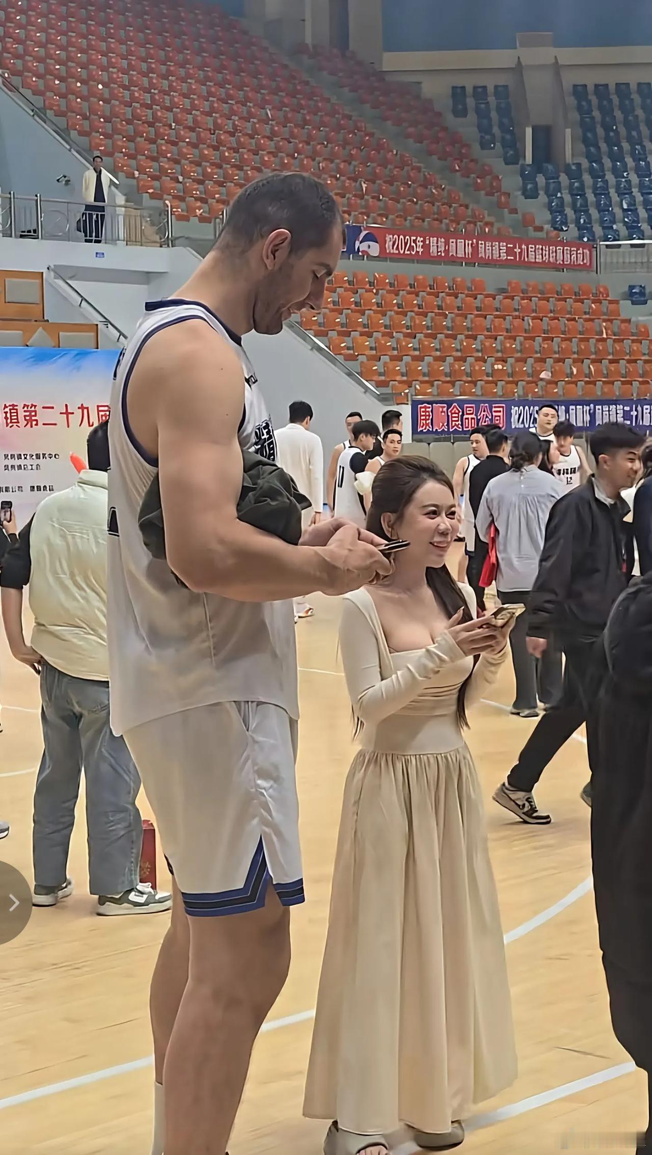 中国美女成功加到了外籍篮球运动员的微信好友,脸上露着微笑。