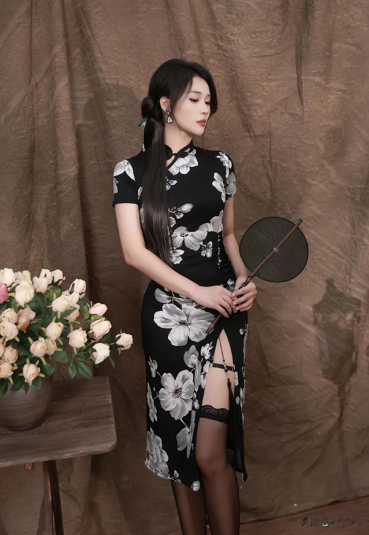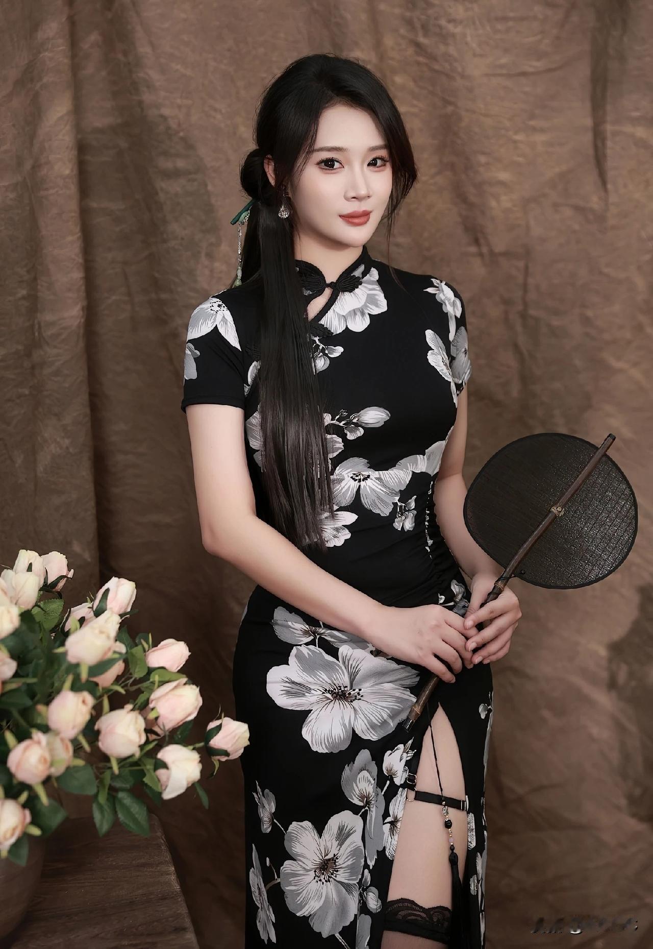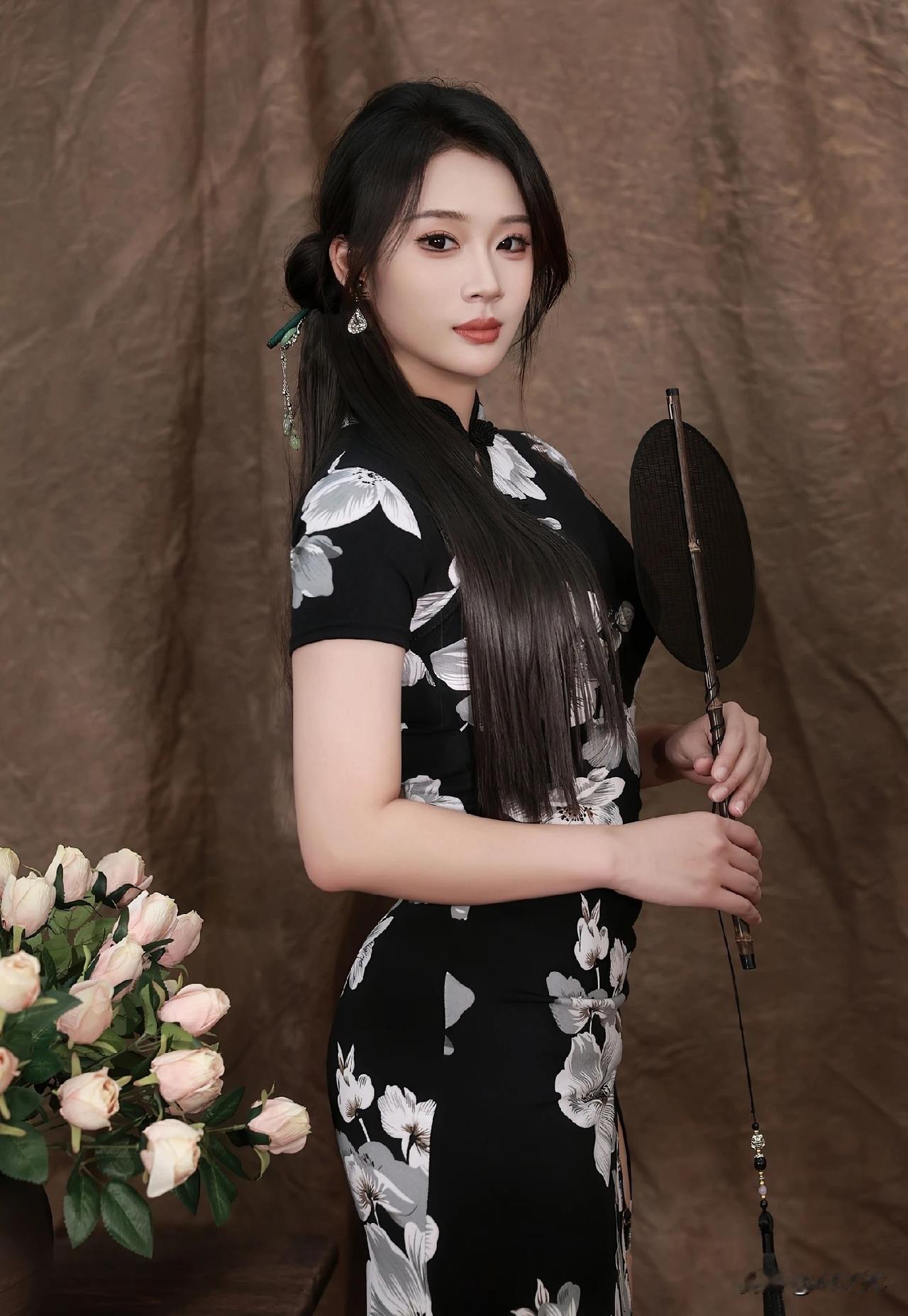 旗袍的配饰有哪些你知道吗? 黑裙花影,古韵悠长,一扇团扇,尽显东方韵味。除了团扇,精致的发簪也是旗袍绝佳的搭档。一根小巧的白玉簪子,轻轻别在发髻一侧,瞬间增添了几分温婉与典雅;若是华丽的点翠发簪,那更是将旗袍的高贵展现得淋漓尽致,仿佛让人穿越回了旧时光里的名门闺秀时代。 还有那温润的玉镯,戴在皓腕之上,随着举手投足间轻轻晃动,碰撞出悦耳的声响。玉的细腻与旗袍的柔美相互映衬,更凸显出女性的优雅气质。 而一双精美的绣花鞋,也是旗袍造型中不可或缺的一环。鞋面上绣着栩栩如生的花鸟图案,与旗袍上的花纹遥相呼应,行走间步步生花,每一步都仿佛踏在诗意的画卷之中。这些配饰与旗袍相得益彰,共同勾勒出了一幅绝美的东方风情画卷。