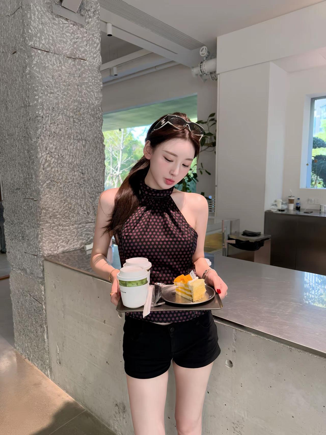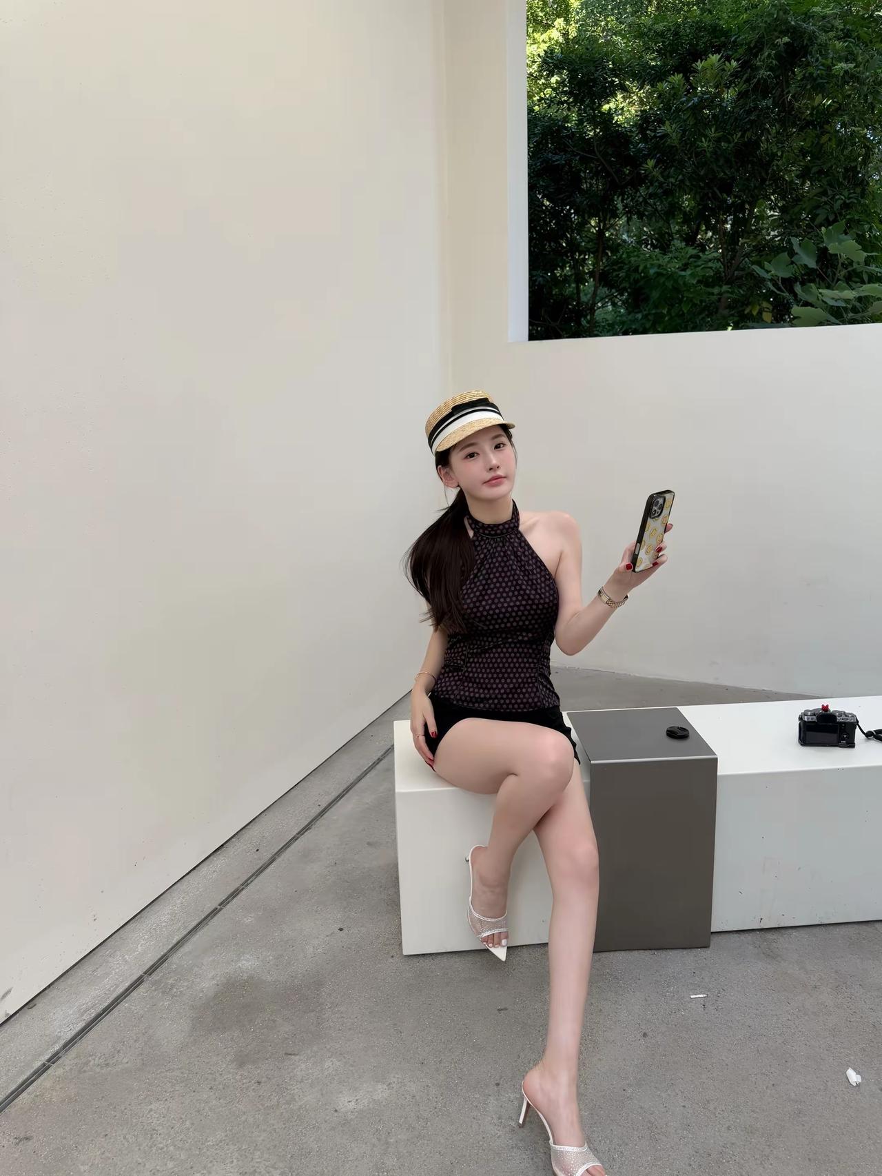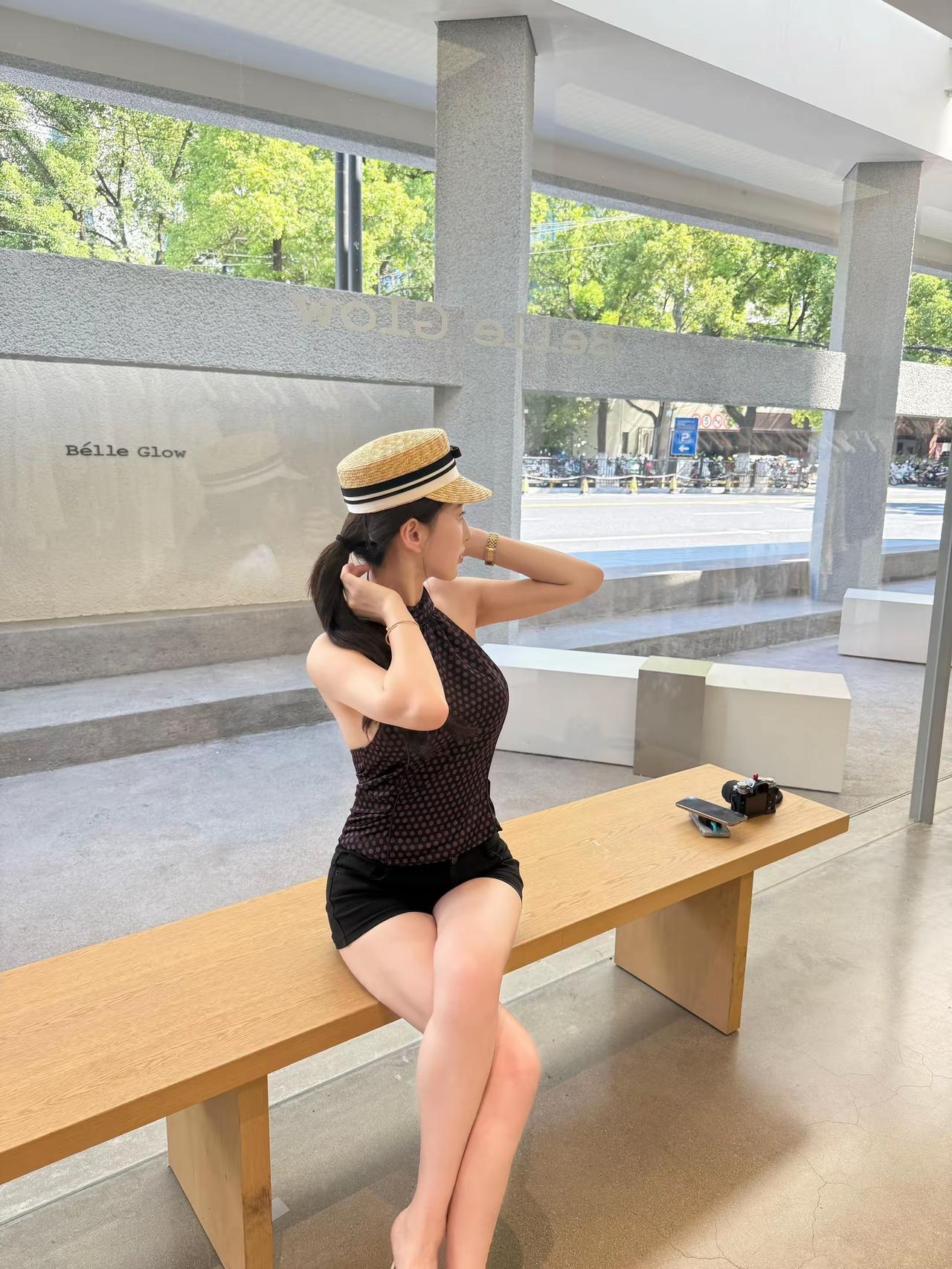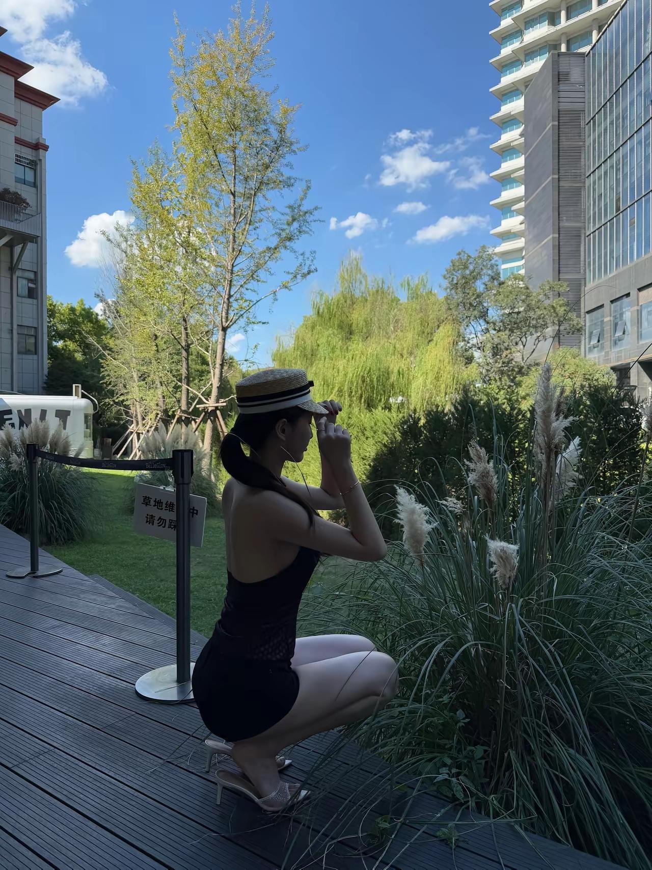 🌿 城市绿洲里的穿搭随拍 波点挂脖上衣的复古感,搭配草编帽和细跟凉鞋,在都市绿植与建筑的碰撞场景里,把法式慵懒和日常随性揉得刚刚好~ 每一处细节都是风格的小彩蛋✨ 穿搭随拍 城市氛围感 复古风穿搭 日常碎片 OOTD 波点风穿搭 法式草帽穿搭