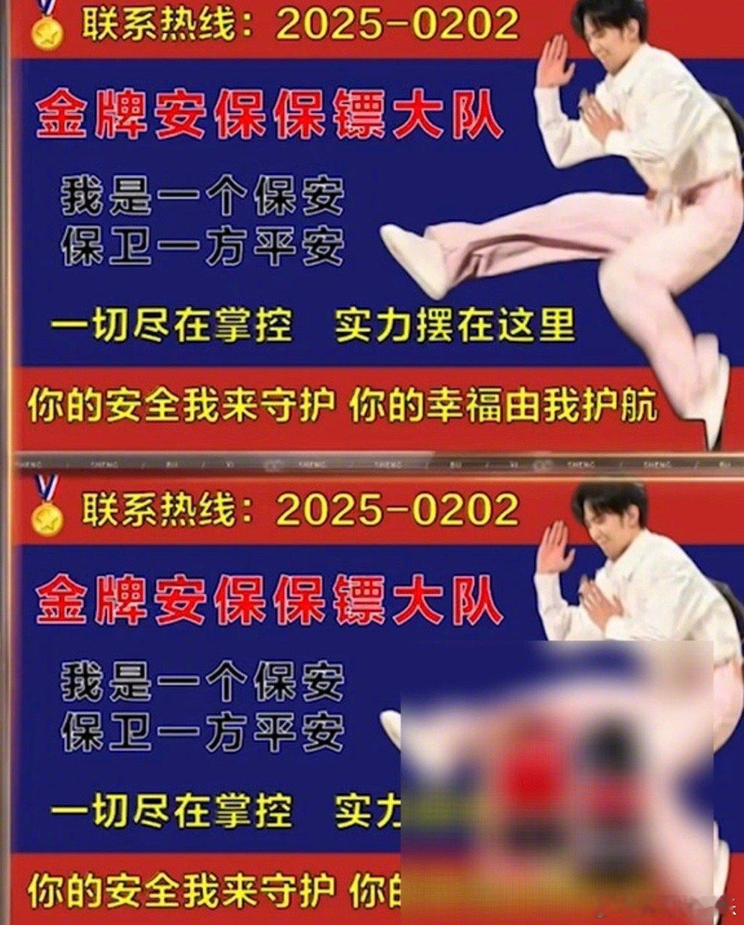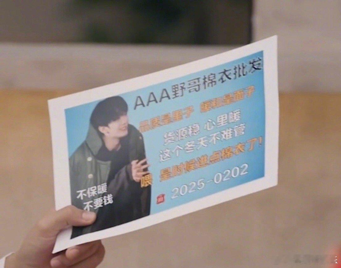 王赫野你们就嚯嚯我吧 吃火锅被自己的小广告包围,穿著标志性服装,拿起保镖大队广告的样子,好笑到出圈,比帅照还让人印象深。