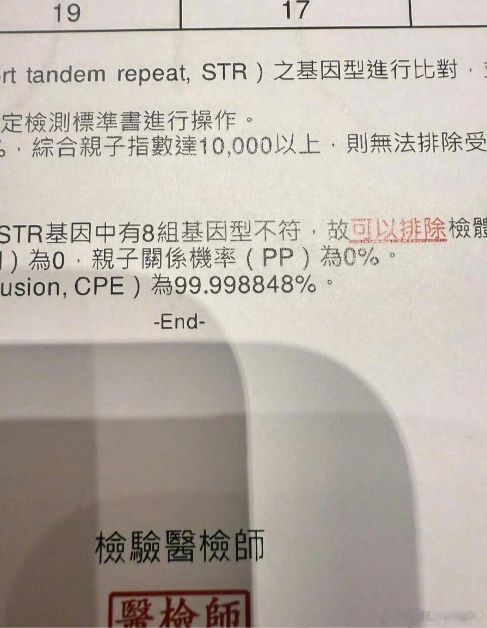 罗志祥经纪人晒亲子鉴定罗志祥经纪人晒亲子鉴定😳为啥晒报告啊?不过也蛮好的安安心心退钱养孩子吧